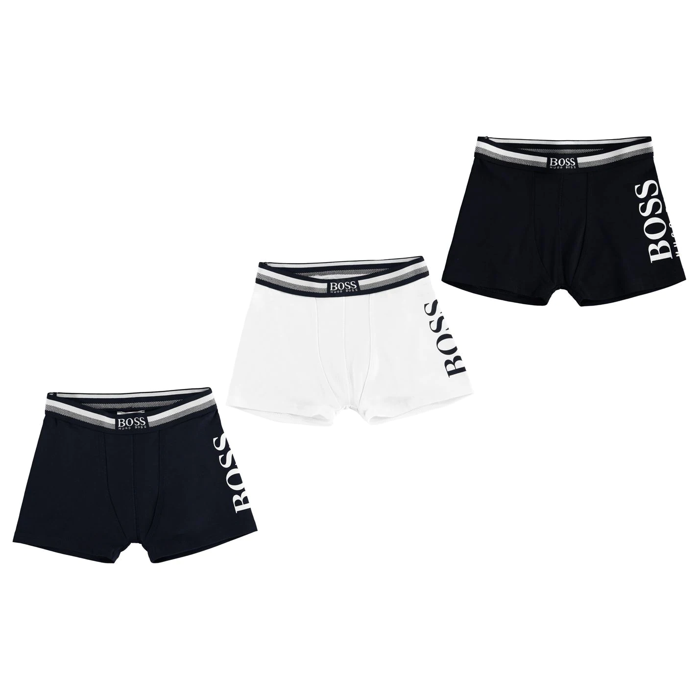 Update your boy’s underwear with these 3 pack Logo Boxers by BOSS. Crafted with flatlock seams to reduce chafing, tonal stitching and large Hugo Boss branding, these 3 pack Logo Boxers are not to be missed.