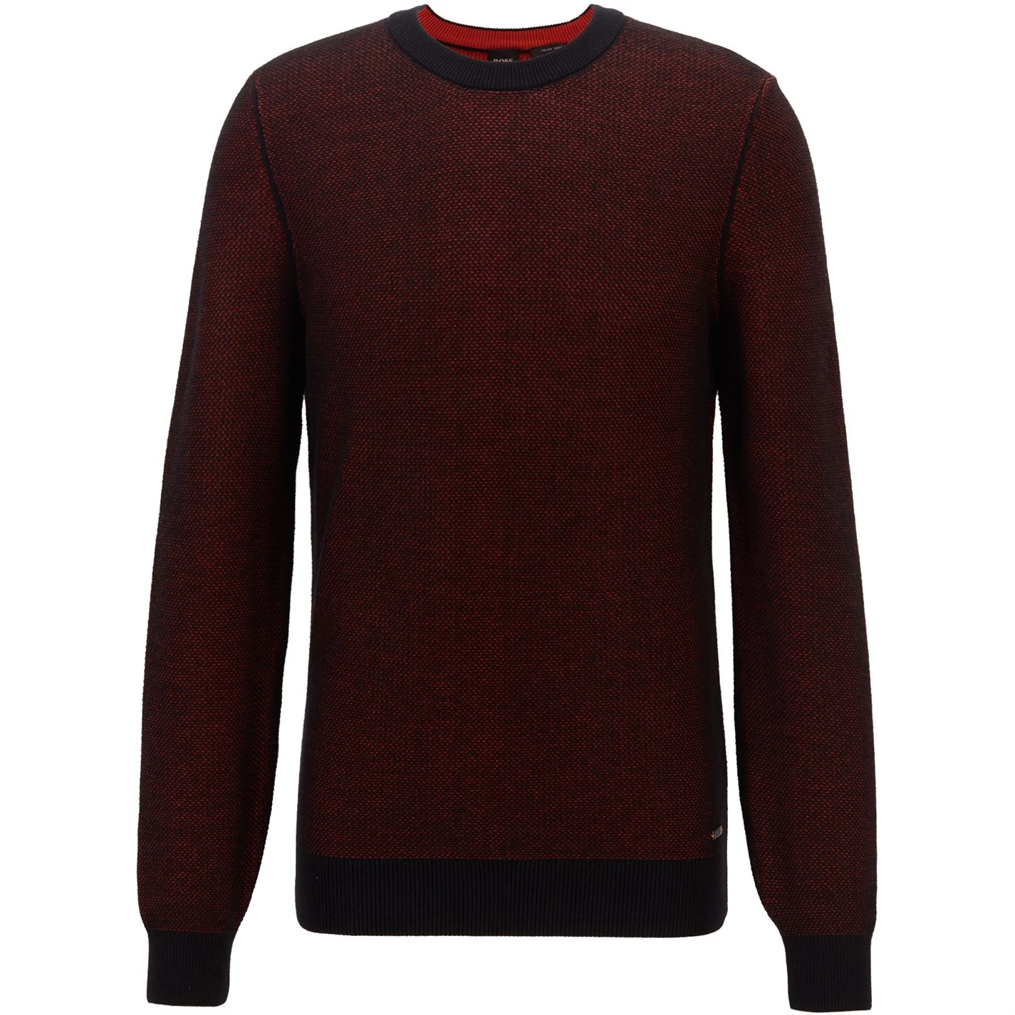 Update your collection with this BOSS Akmusso Knit Jumper. Crafted with a ribbed crew neckline and long sleeves for a classic look, it features elasticated hems for a comfortable fit. This jumper is a solid colouring throughout designed with a signature logo and is complete with BOSS branding.