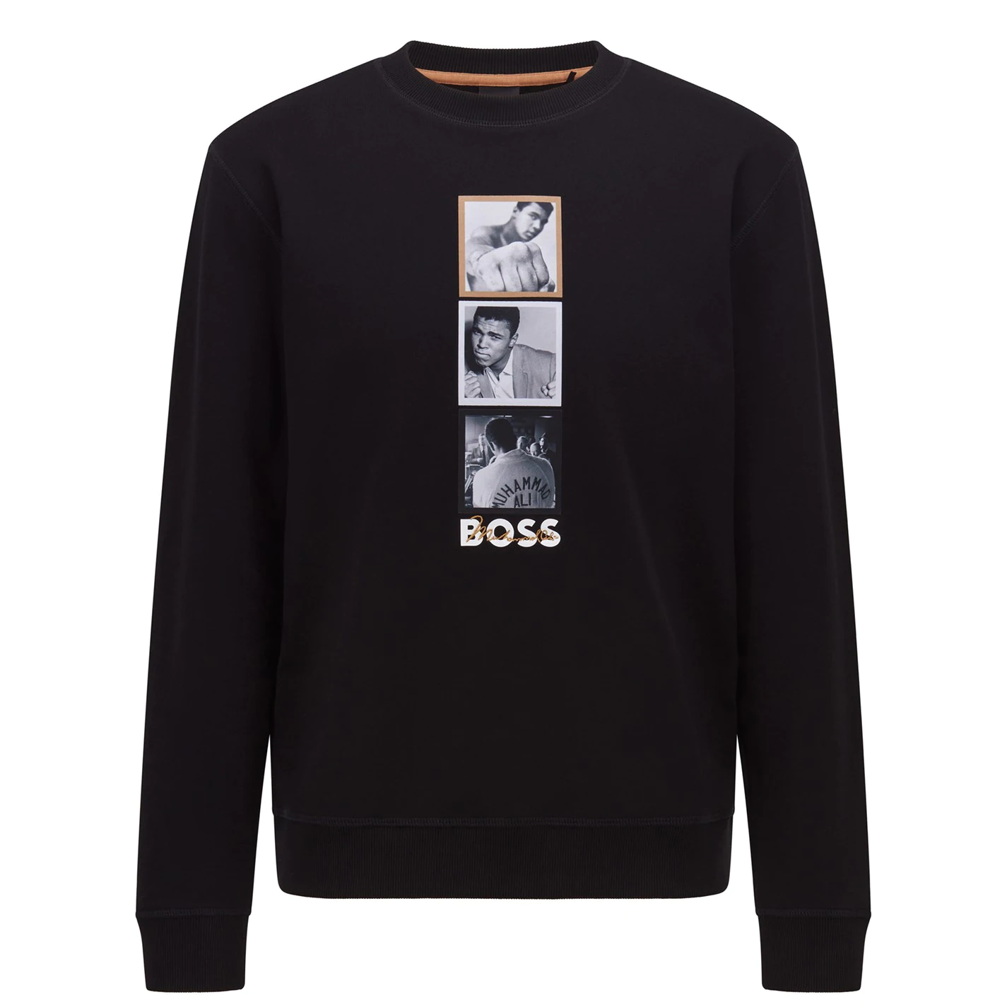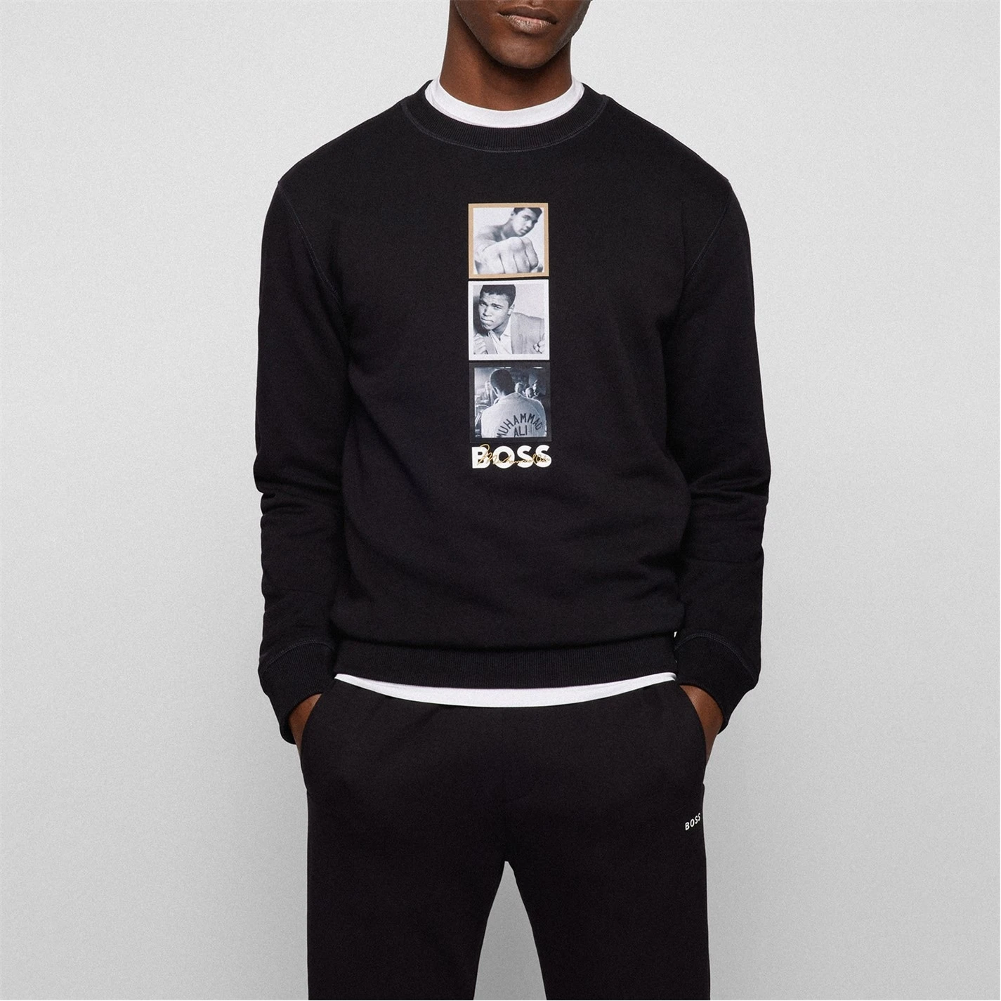 Elevate your collection with this BOSS Ali Sweatshirt. Crafted with a ribbed crew neckline and long sleeves for a classic look, it features elasticated hems for a comfortable fit. This sweatshirt is a solid colouring throughout designed with a signature logo graphic and is complete with BOSS branding.