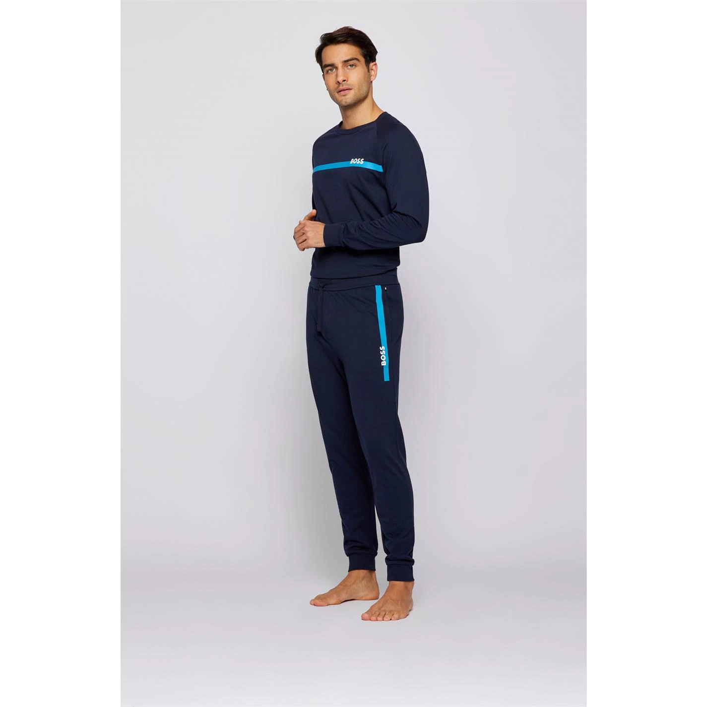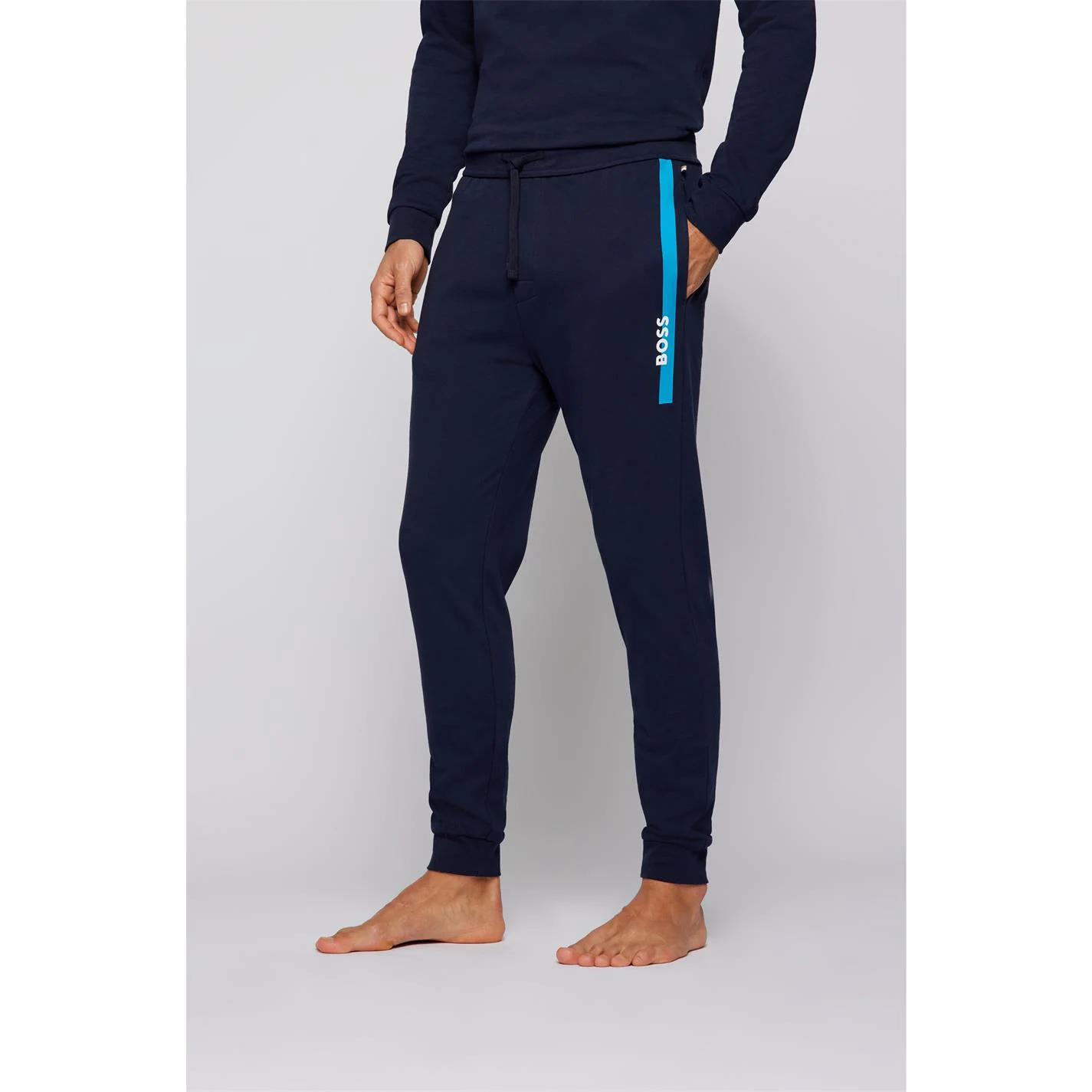 Update your collection with these BOSS Authentic Jogging Pants. Crafted with an elasticated waistband and drawstring fastening for a secure fit, they feature comfortable ribbed cuffs and two hand pockets for a classic look. These joggers are designed with a signature logo and is complete with BOSS branding.