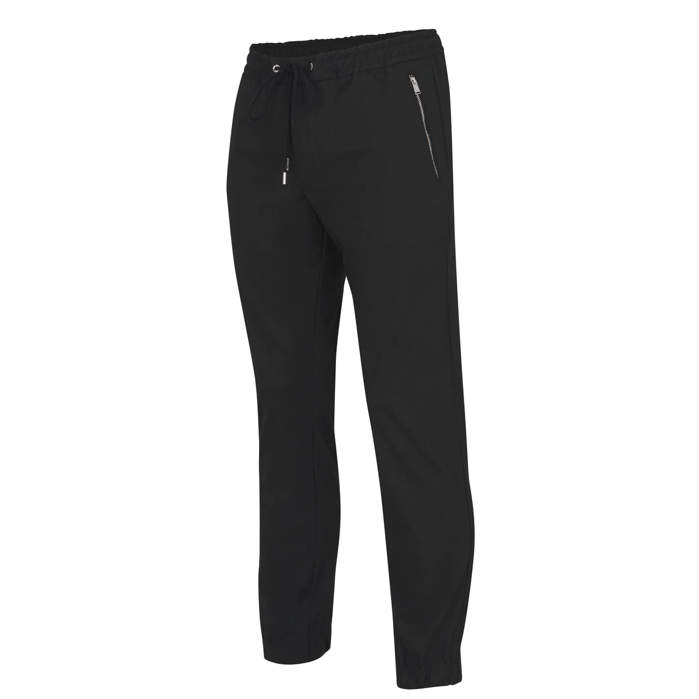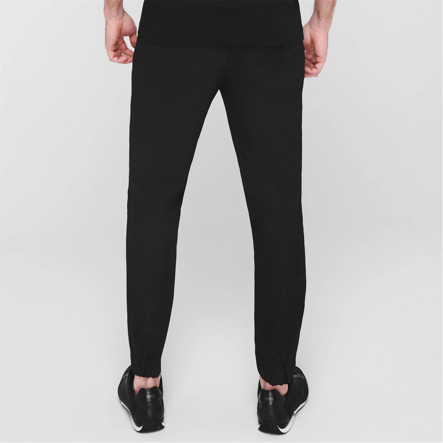Elevate your collection with these BOSS Bank SPWZ Trousers . Crafted with an elasticated waistband, soft polyester mix, drawstring, button and zip fastening for a secure fit. They feature elasticated ankle cuffs for comfort and two hand pockets with zips for storage and two faux pockets fro style. These trousers are completed with a signature metal motif embossed above the back pocket. 65% Polyester, 32% Viscose, 3% Elastane. Do not wash.