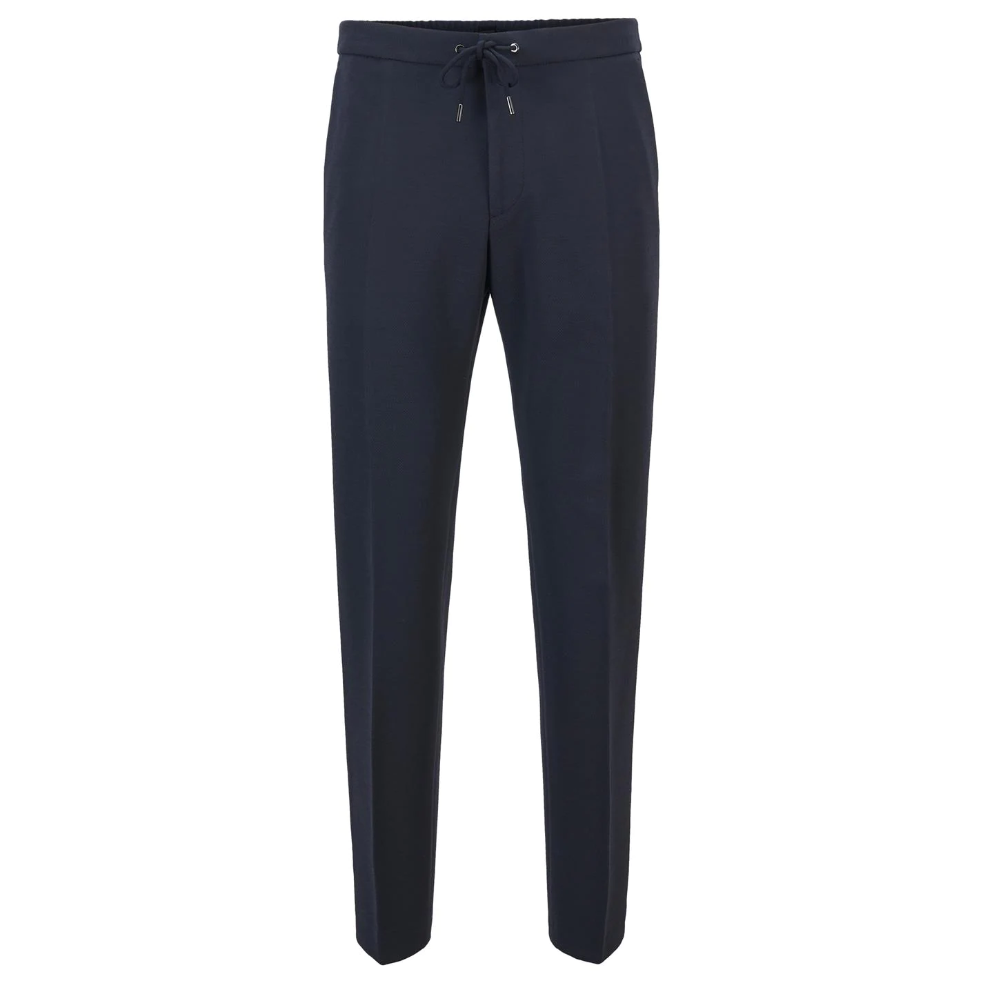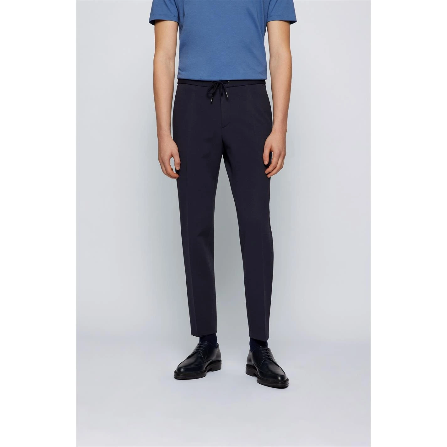 Invest in your smart rotation with these BOSS Banks Trousers, perfect for a smart-casual attire. Crafted in a viscose fabric with cotton pocket lining, these trousers feature a elasticated waistline, two front pockets and back pockets, zipped fly with drawstring and clasp fastening. The look is finished off in a slim fit and an all over classic puppy-tooth pattern. Pair with a shirt and jacket for a classic luxury aesthetic. Material 70% viscose, 25% polyamide, 5% elastane. Pocket lining 100% cotton. Dry clean only.