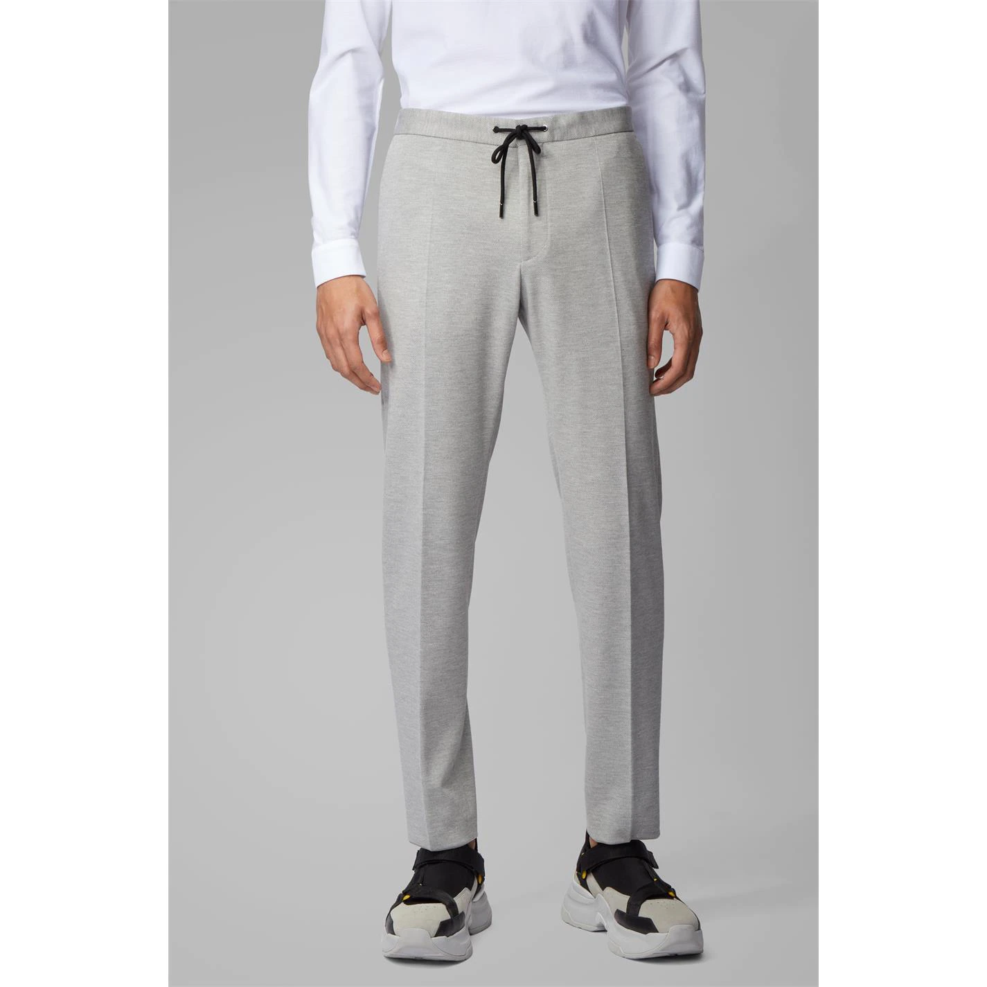 Slim fit trousers by BOSS Menswear, tailored with a regular rise. These smart-casual trousers are crafted in a mix of viscose and polyamide fabric with cotton pocket lining for comfort and mobility. The trousers feature a zipped fly and clasp fastening with elasticated waist and drawstring closure, two front slit pockets and two back pockets. Material, 65% viscose, 30% polyamide, 5% elastane. Lining, 100% cotton. Dry clean only.