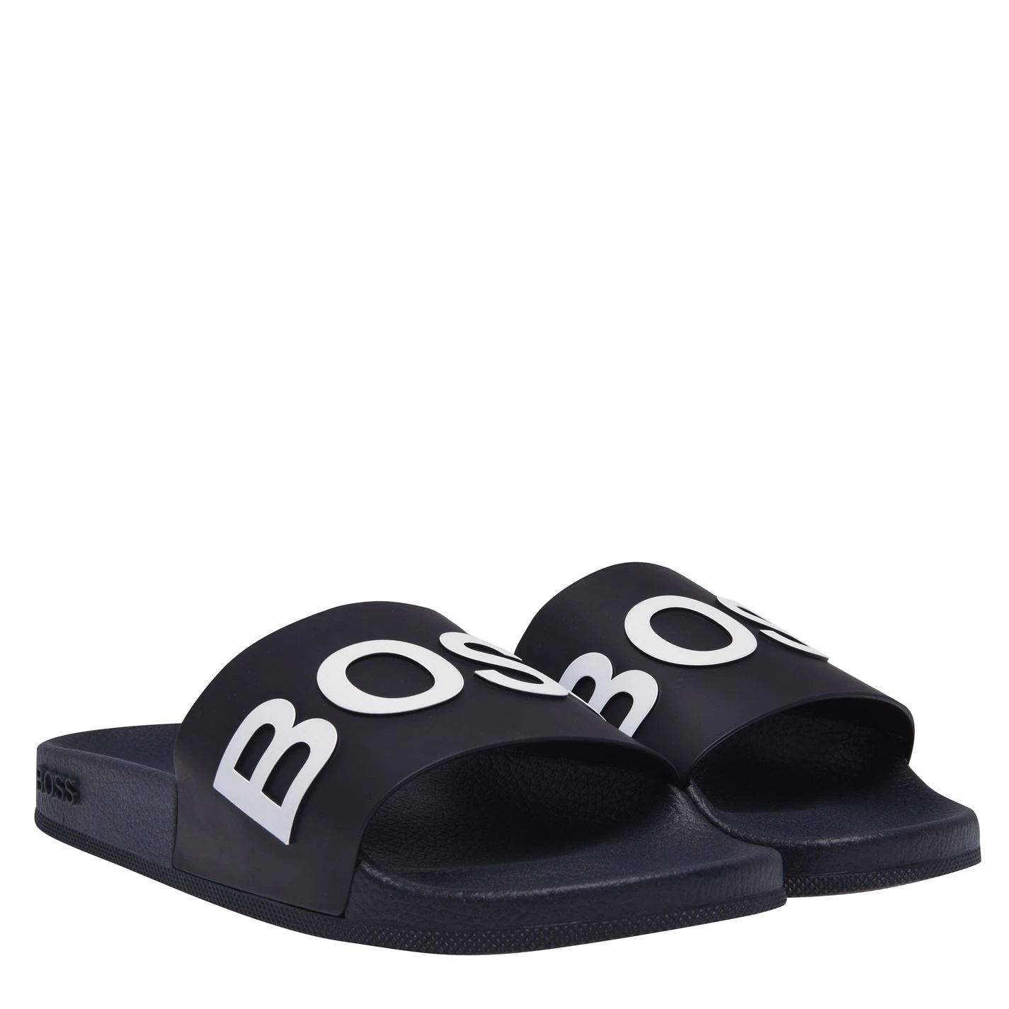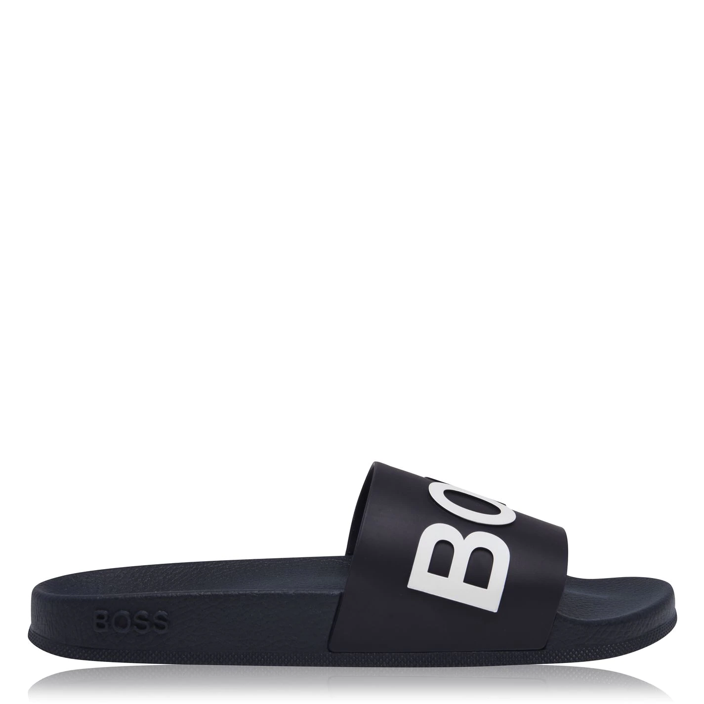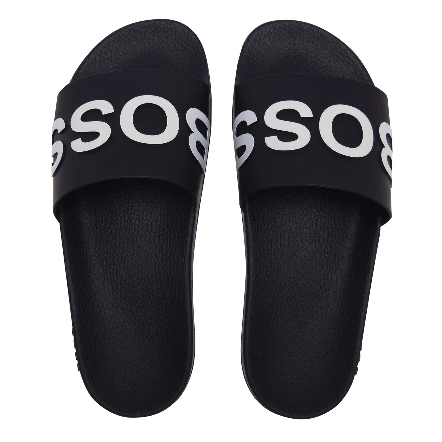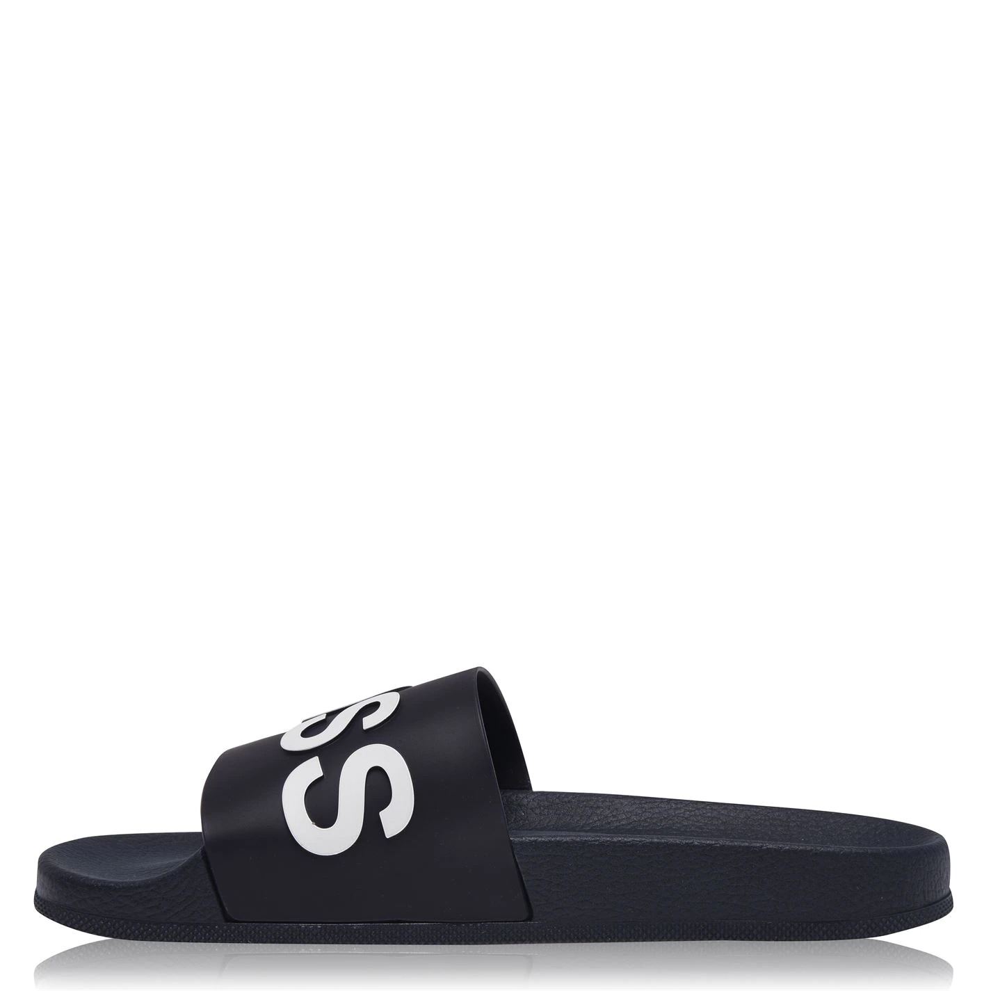 Elevate your casual look with these Bay Pool Sliders from Hugo Boss. This piece then further features a thick rubbery strap across the front with a soft lining and a moulded rubber footbed for added comfort, all while also being adorned with the signature Hugo Boss logotype for a bold brand statement.