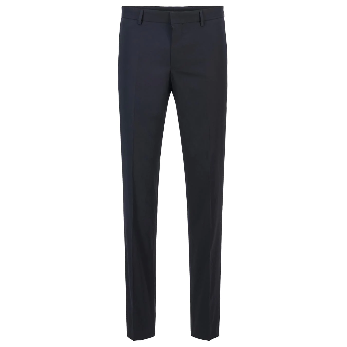 Slim fit trousers by BOSS Menswear, tailored with a regular rise. These formal trousers are crafted in soft cotton with viscose lining that feature a zipped fly and clasp fastening with belted loops, two front slit pockets and two button fastening back pockets. Combine them with the matching BOSS jacket and waistcoat to build a modern three-piece. Material 96% cotton, 4% elastane. Lining, 100% viscose. Dry clean only.