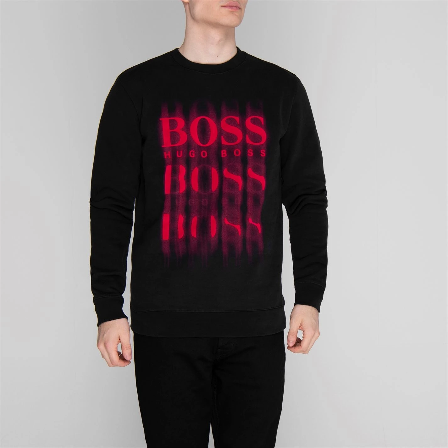 Make a bold statement in this Hugo Boss Blurred Logo Sweatshirt, crafted from a high-quality luxurious cotton blend. The striking design features the iconic BOSS Hugo Boss branding emblazoned across the chest in large print, but blurred for effect.