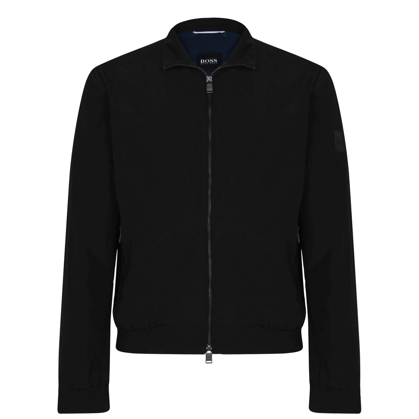Featuring the Hugo Boss Caius Jacket in Black. This expertly crafted water resistant jacket features two zipped side pockets, a visible zip fastening and an embroidered patchwork of the the Hugo Boss iconic logo in leather on the left sleeve. For a comfortable and casual finish, it is also ribbed at the cuffs and hemline, offering a high quality, comfortable construction perfect for every day casual wear.