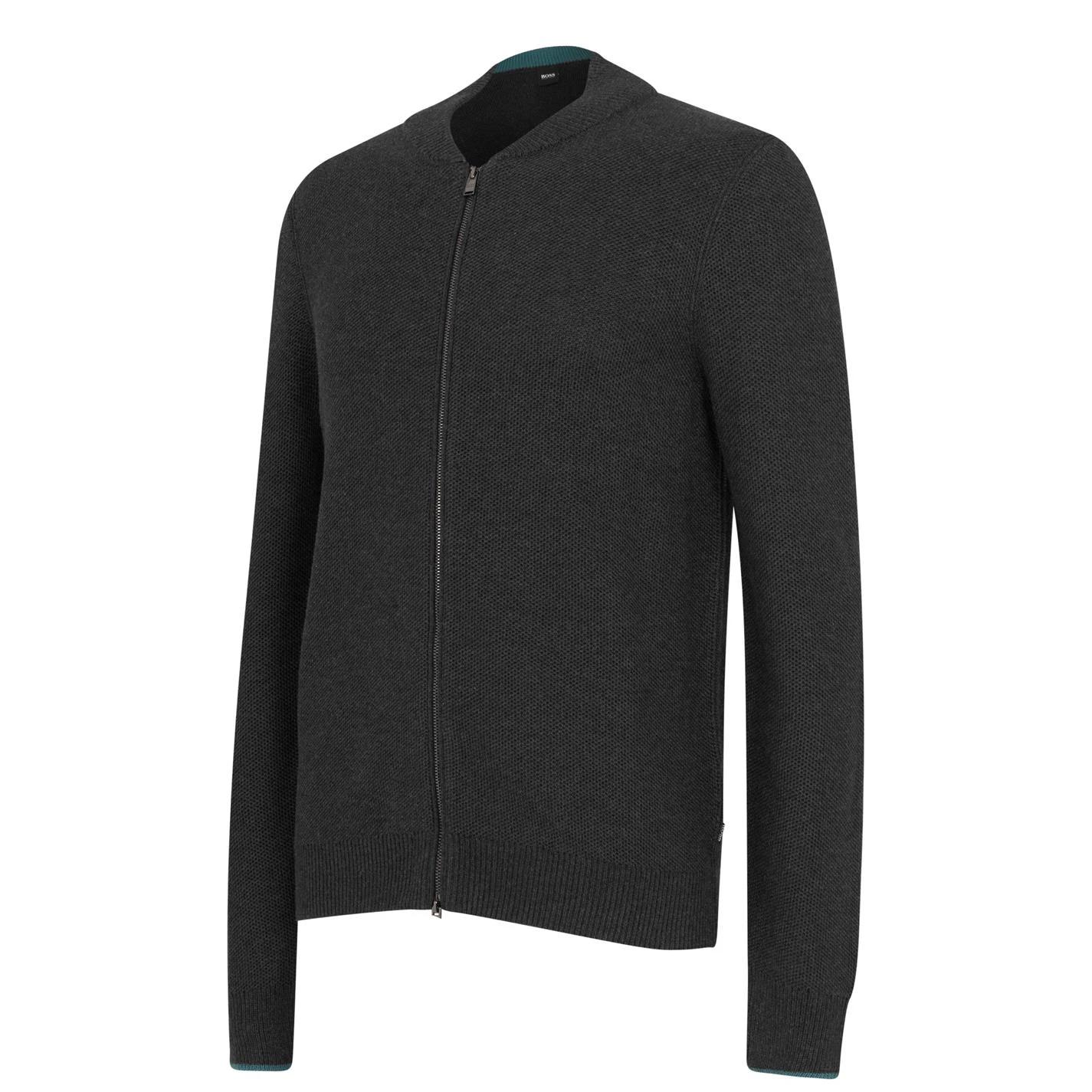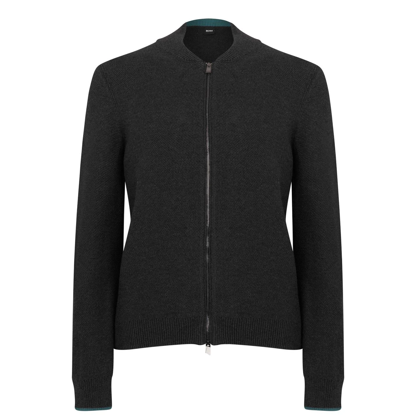 Finish your Autumn Winter staples with this trendy and cosy sweater brought to you by Hugo Boss. Crafted from a mix of fabrics for comfortable wear, the Dalcero Sweater styles a full honeycomb construction throughout, decorated with block colouring, a ribbed flat collar, long sleeves and full zip fastening for comfortable and convenient wear.