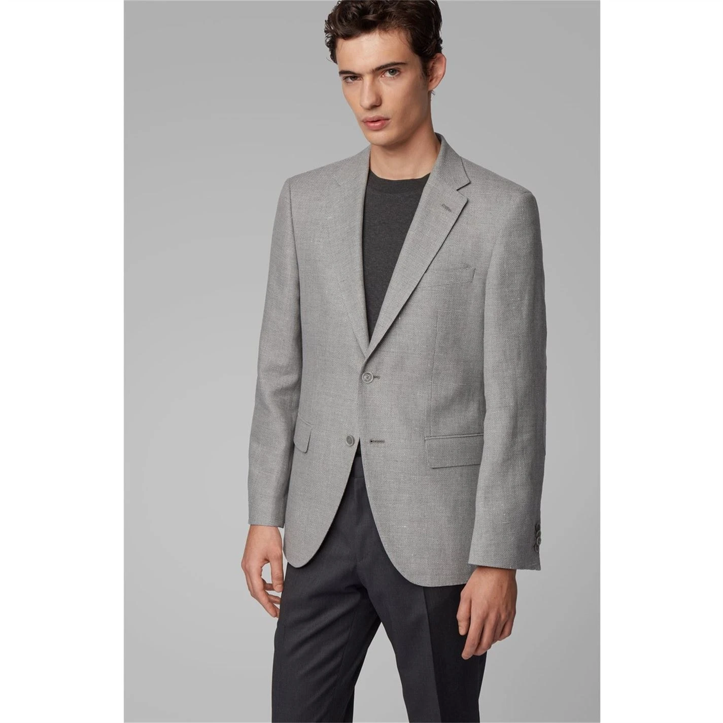 Add a classic into your collection with this sophisticated piece from Hugo Boss. Decorated with solid colour throughout, this blazer inspired piece offers a long flat collar, a front button fastening, long sleeves and front flap pockets for a practicality.