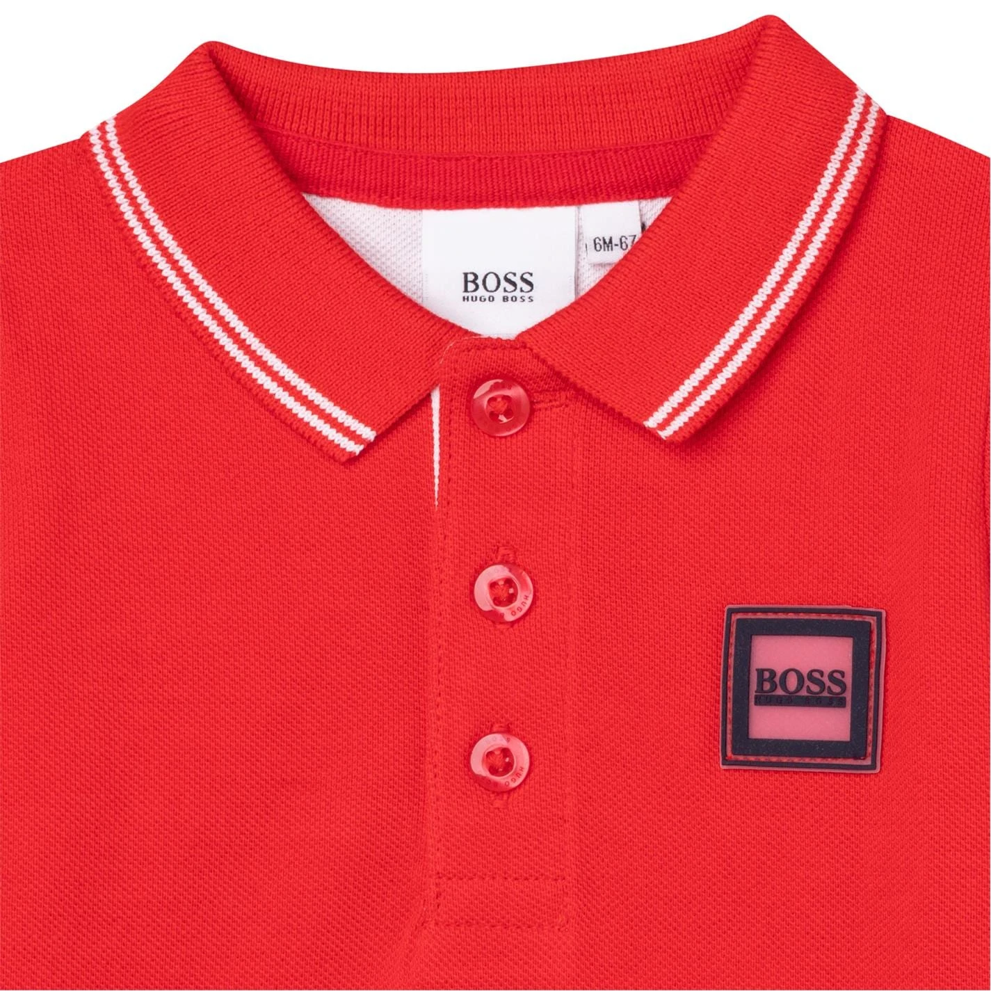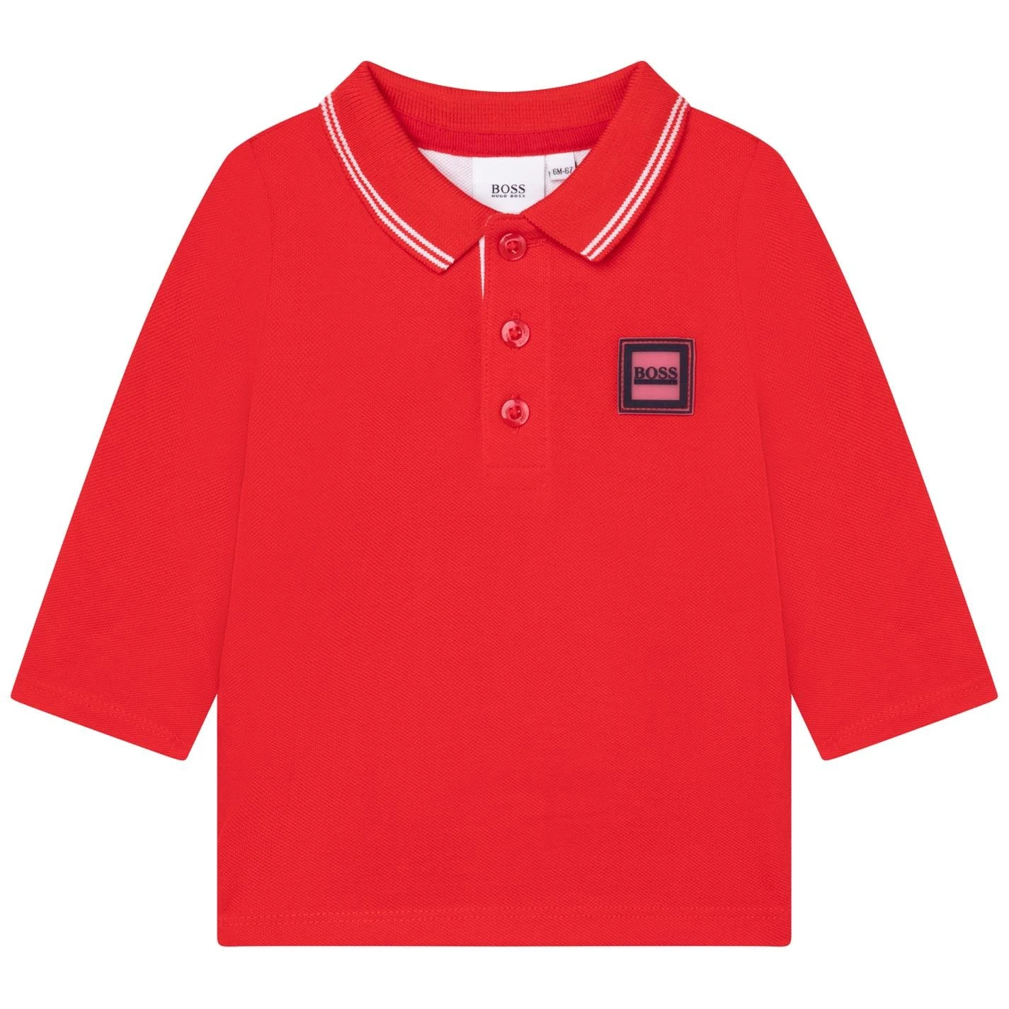 Treat a youngster to this smart casual classic from Hugo Boss. Crafted from a high quality Cotton, the top features a pointed collar, three button placket, long sleeves and coloured tips to the trims. Designed with block colour throughout, the polo is finished with signature Hugo Boss branding embroidered to the chest.