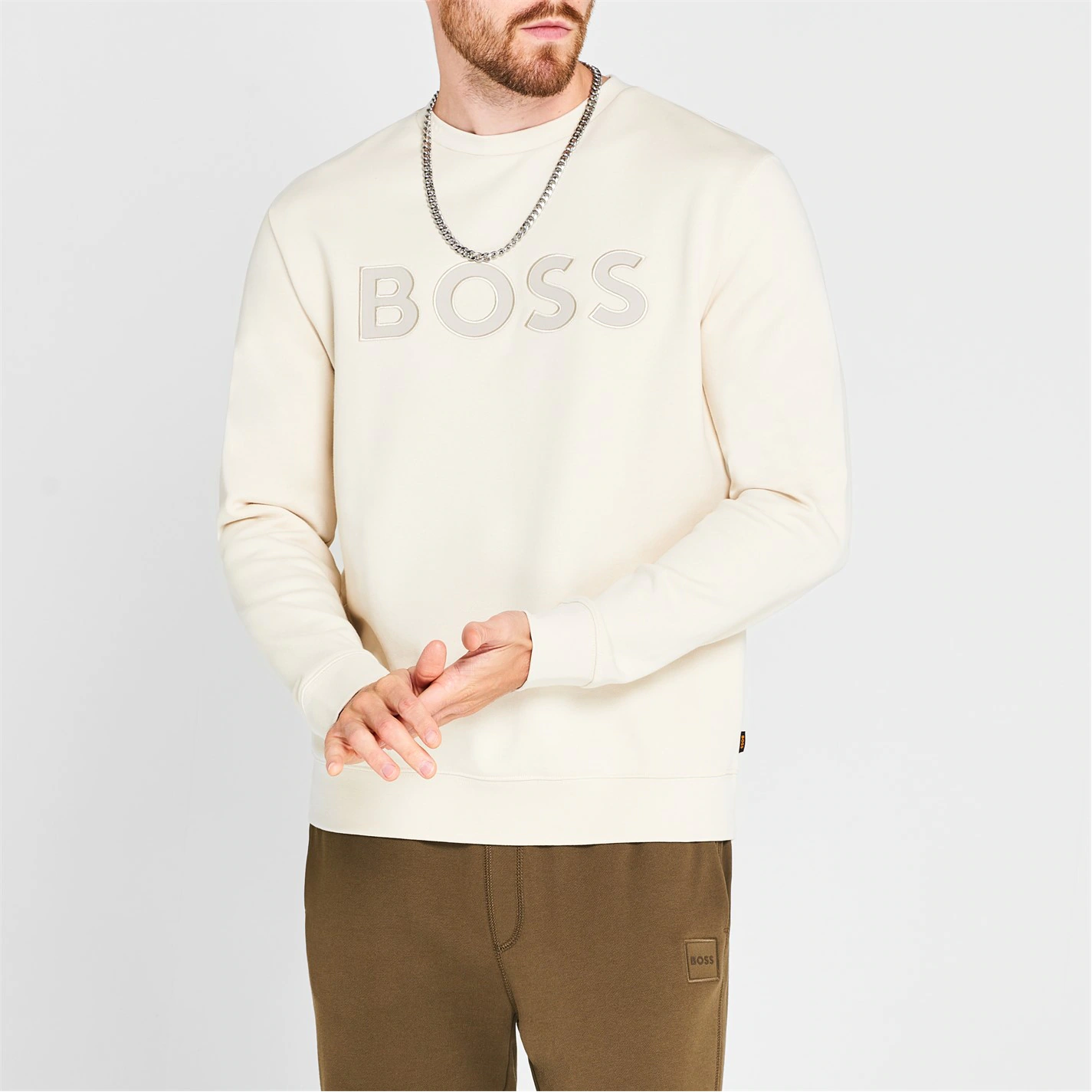Switch up your everyday sweater collection with this stylish Boss Logo Men’s Sweater. This soft cotton sweater has been crafted in a regular fit with a crew neck design, long sleeves, and a ribbed trims for added comfort. The look is finished with block colour throughout and signature Boss branding.