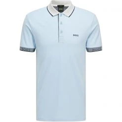 Switch up your everyday polo collection with the Paule Polo Shirt from Boss. This soft Polo has been crafted in a regular fit with a fold down collar design, short sleeves, and three button placket. The look is finished with a simple design to the front and Boss branding for the designer finish.