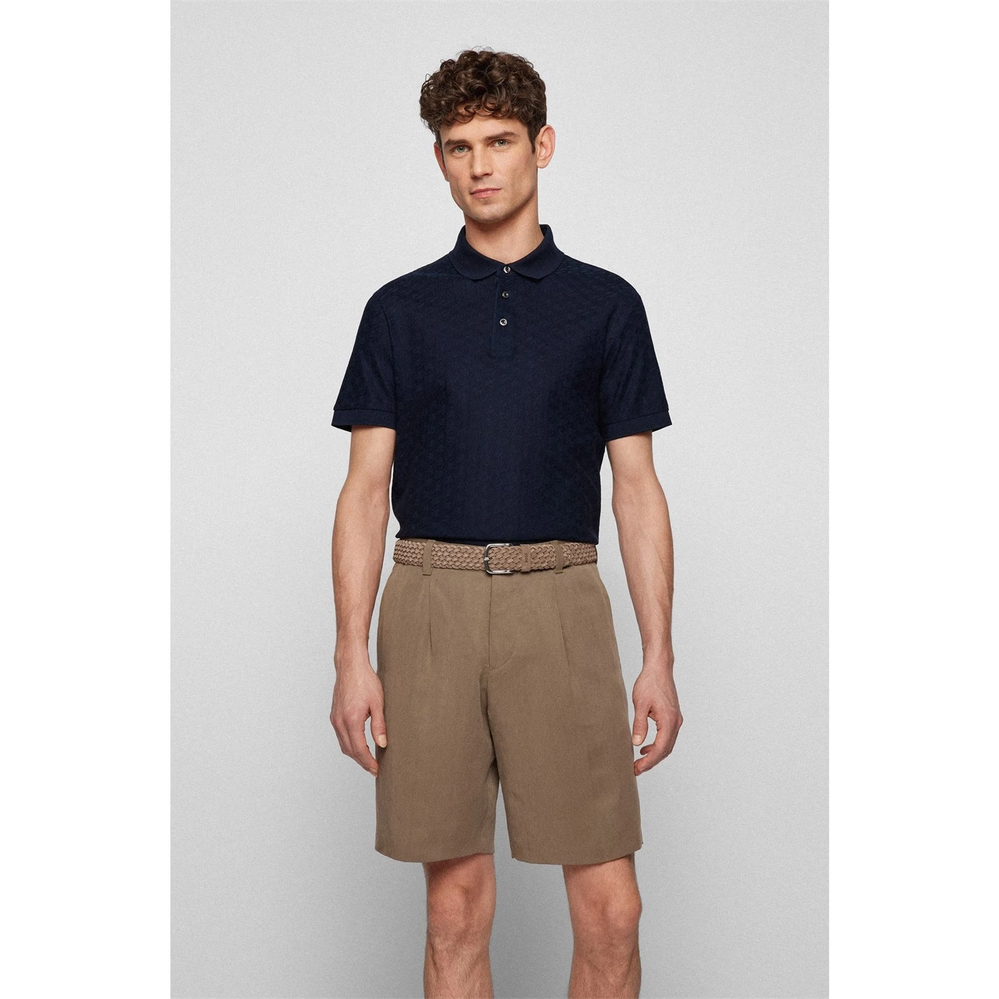 Switch up your everyday polo collection with this Polo Shirt from Boss. This soft Polo has been crafted in a regular fit with a fold down collar design, short sleeves, and three button placket. The look is finished with a simple design to the front and Boss branding for the designer finish.