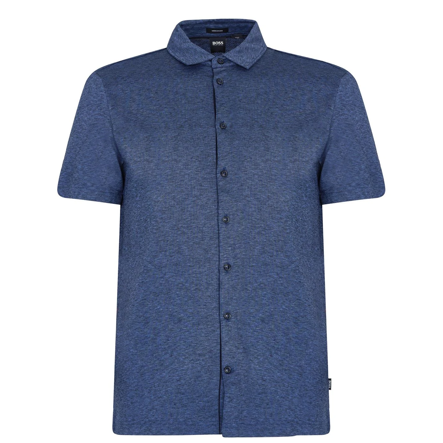 Finish your smart causal attire with this trendy and staple piece from Hugo Boss. Crafted from 100% Cotton, the Powell Polo has been designed with a block colour throughout, featuring short sleeves, a classic shirt collar, full button fastening and regular overall fit. Finished with minimalist Boss branding.