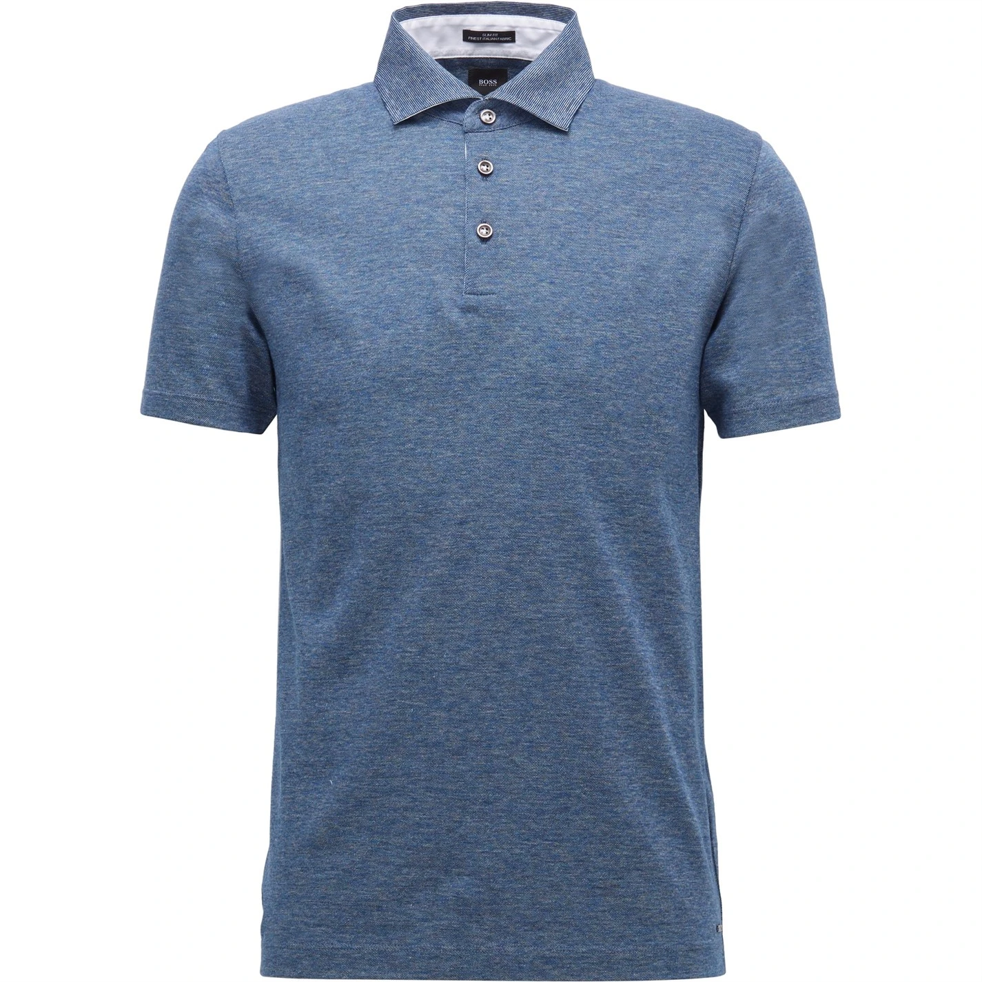 Add a hint of sophistication to your attire with this Mens Boss Polo Shirt. Crafted from a cotton blend fabric, this short sleeved polo shirt features a ribbed shirt collar and a two button placket for maximum ease. The look is finished with the brands signature labelling embroidered to the left chest area, this polo shirt is perfect to pair with denim jeans and trainers for a smart casual look.