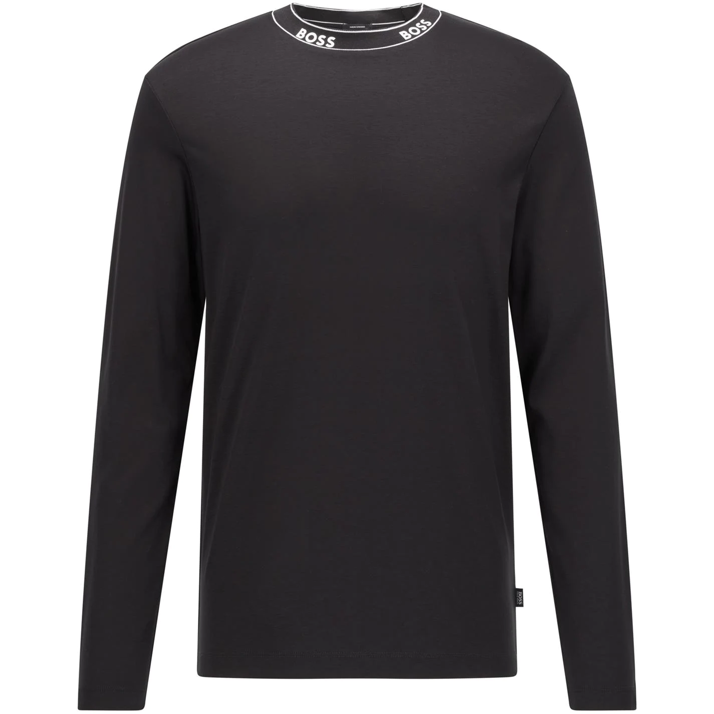 Invest in your everyday attire with the Talley T Shirt brought to us by Boss. Produced to a regular fit from quality cotton, this tee offers a crew neckline with long sleeves and ribbing along the collar and cuff for a precise fit. There is solid colour throughout the piece for easy styling with a unique and contemporary contrast collar band design that incorporates Boss branding for steady brand appreciation. Additional Boss logo brand tag to the side of the hem for premium detailing. 100% Cotton. Machine washable.