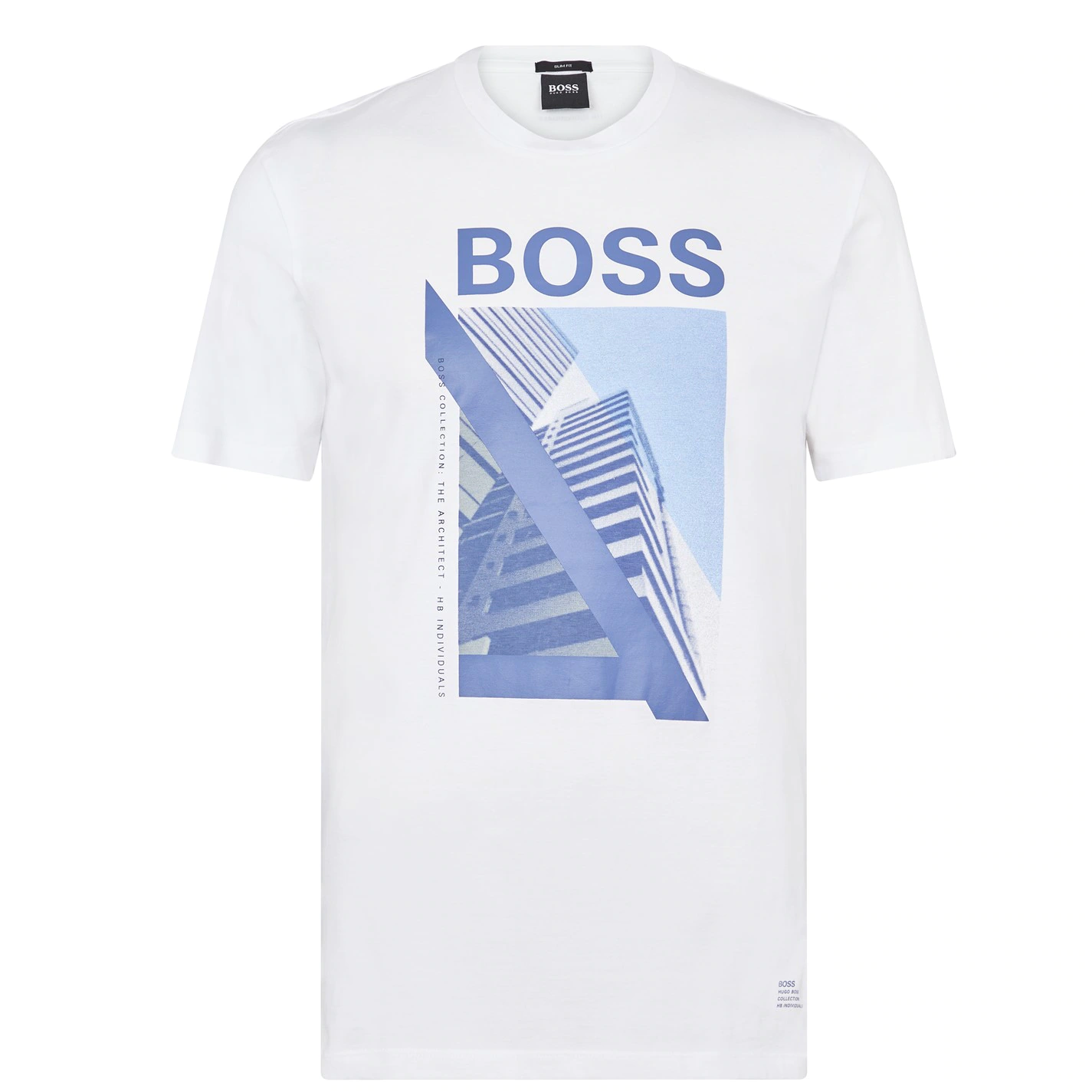 Refresh your essentials with this T Shirt from Boss. Made from a soft cotton blend, this t shirt is cut in a regular fit and features a ribbed crew neckline with short sleeves, a straight hemline and elasticated trims for a comfortable wear.