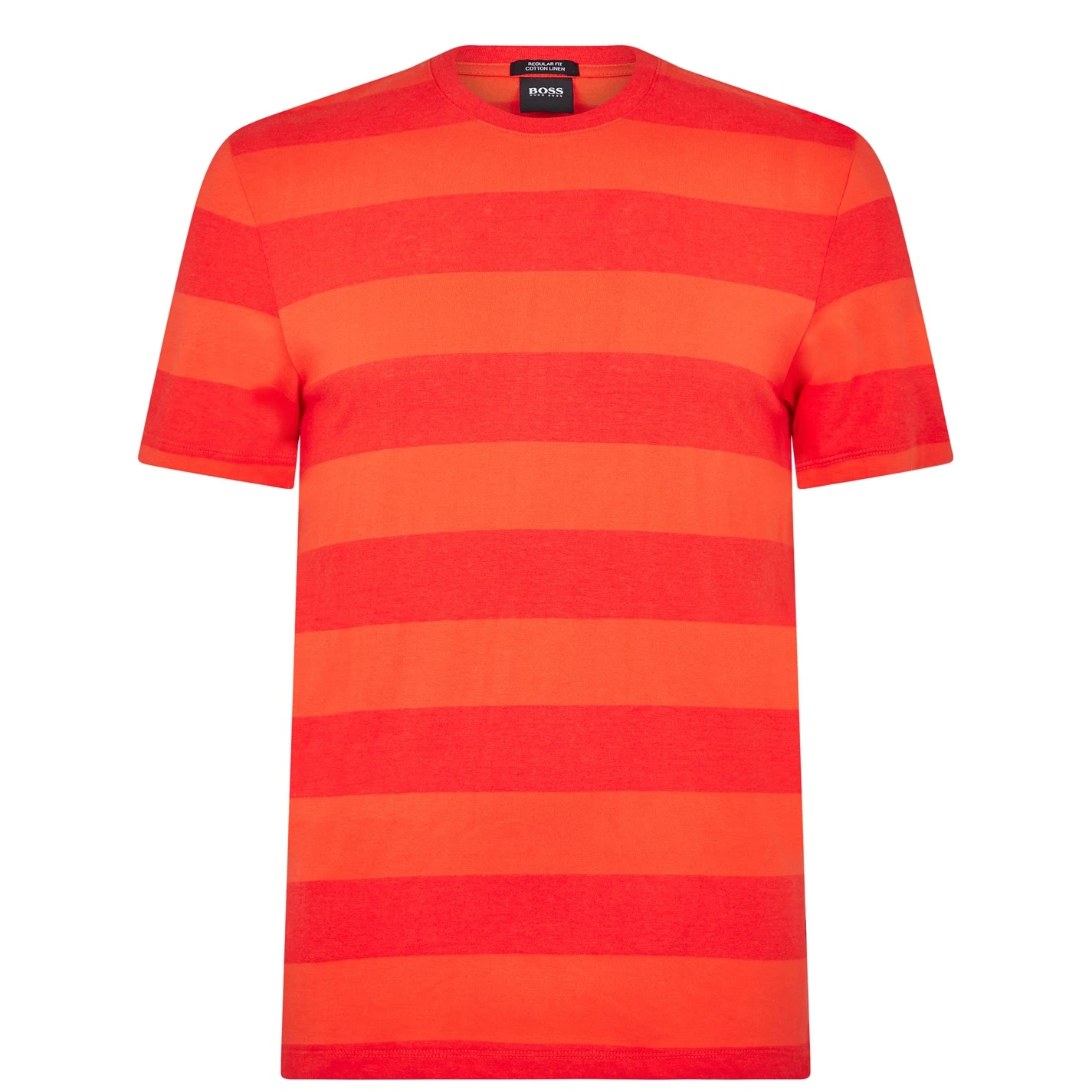 Refresh your essentials with this T Shirt from Boss. Made from a soft cotton blend, this t shirt is cut in a regular fit and features a ribbed crew neckline with short sleeves, a straight hemline and elasticated trims for a comfortable wear.