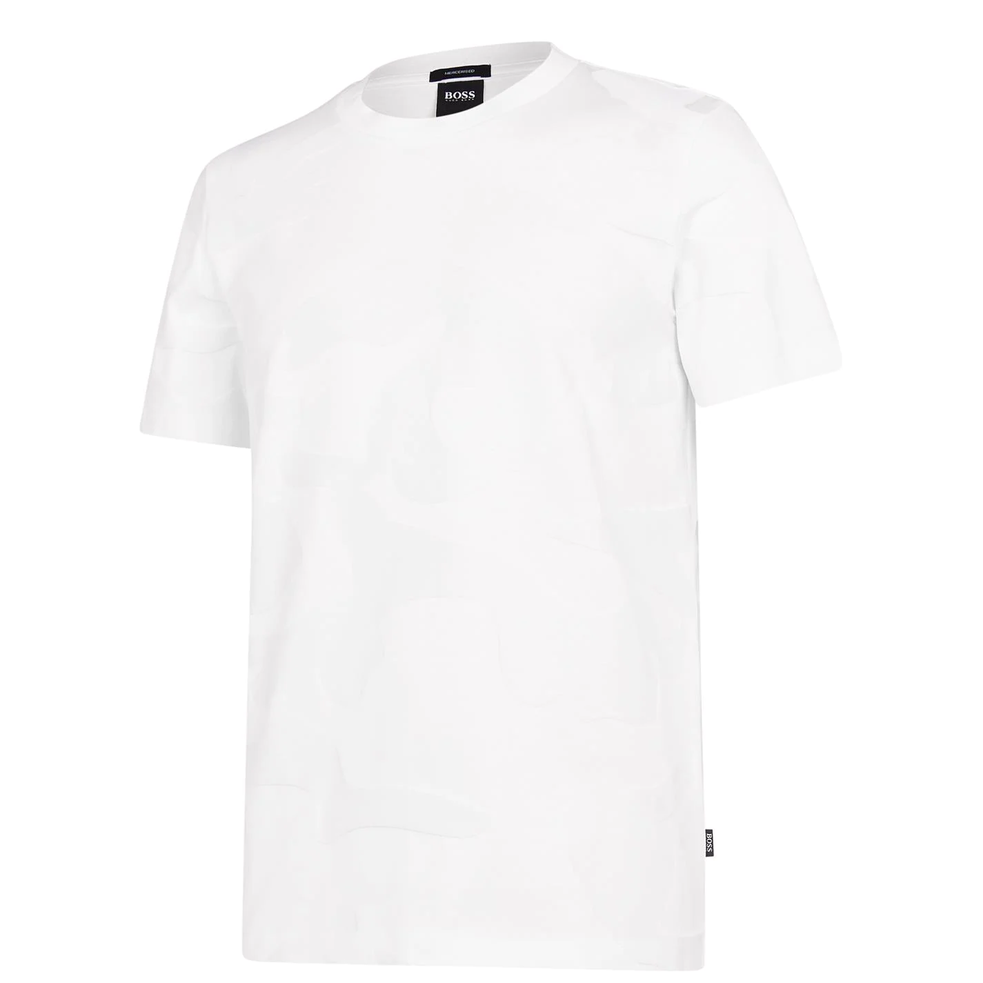 Finish your T Shirt collection with this staple piece from Hugo Boss. This stylish and urban tee comes with a ribbed crew neckline, short sleeves and regular overall fit, decorated with a tonal design for a simple yet versatile approach. Crafted from 100% Cotton with a tone on tone camo effect, this iconic T Shirt can be dressed up or dressed down worn with shorts in the summer or layers for colder days.