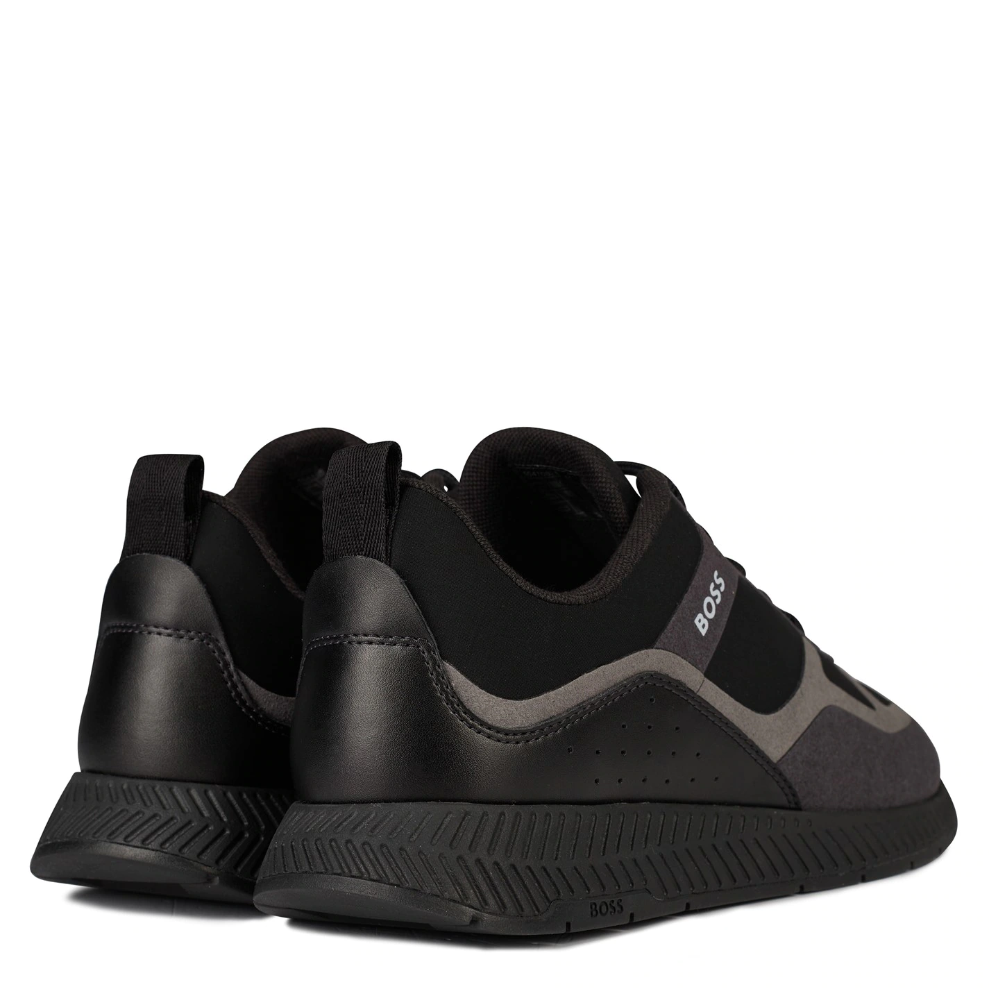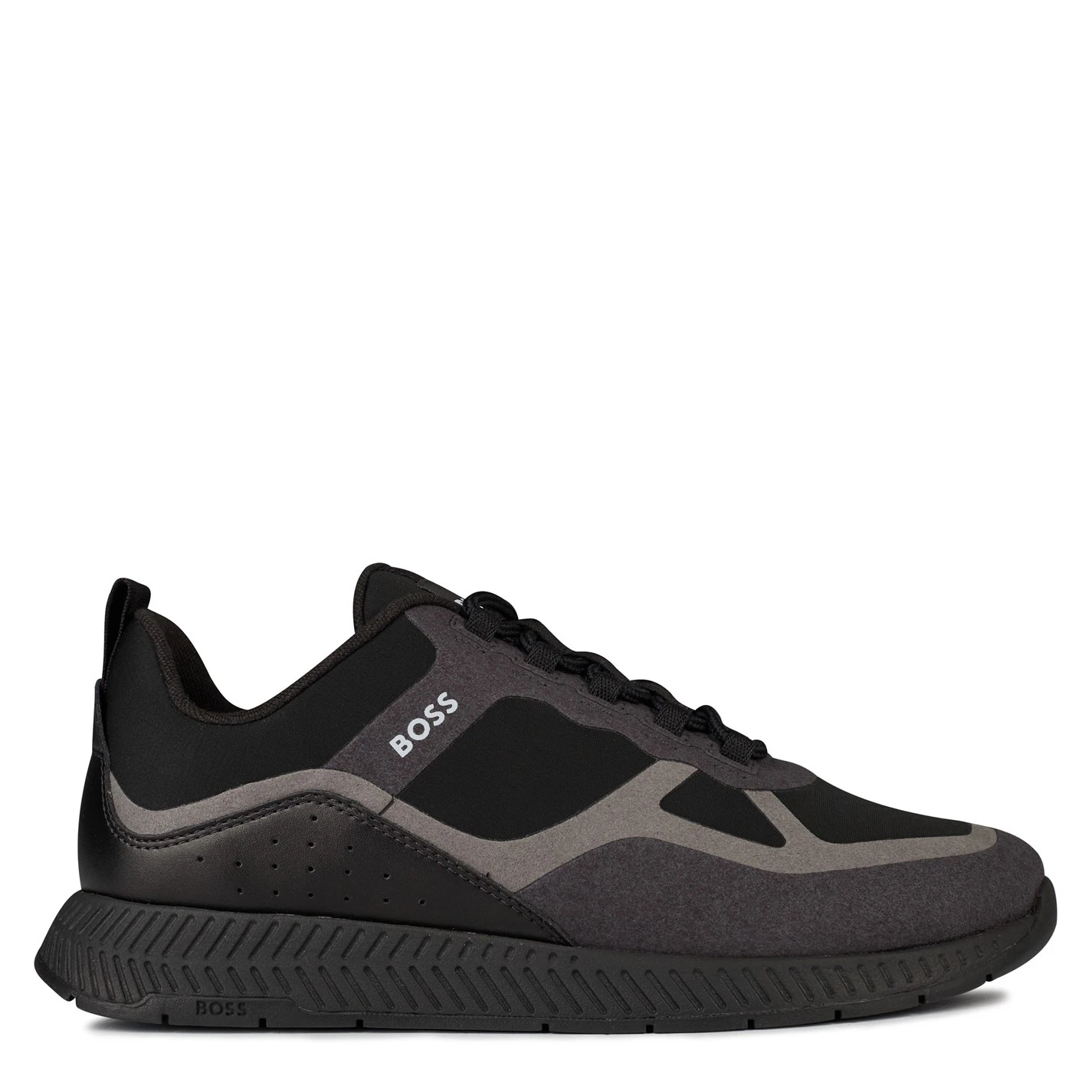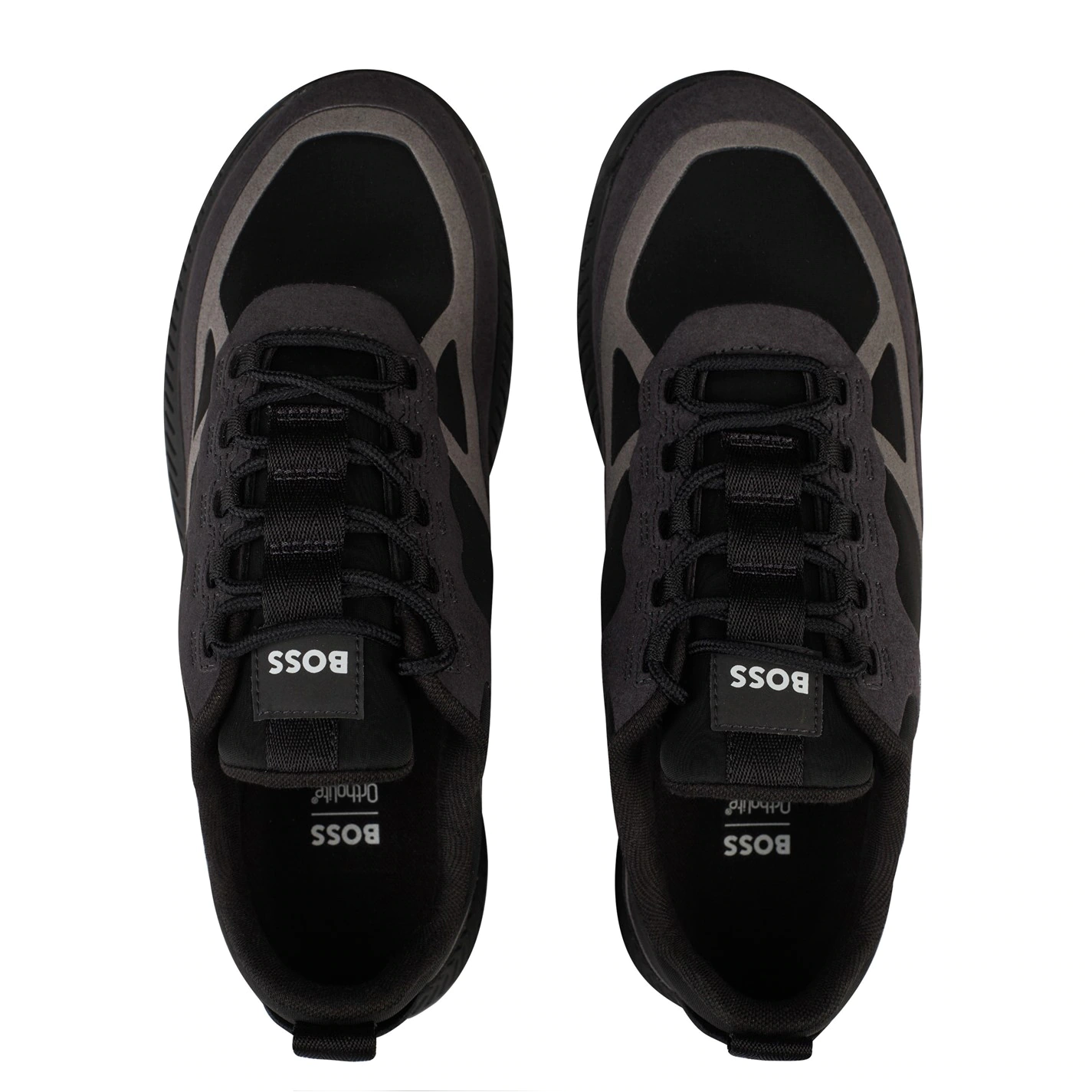 Complete with signature Hugo Boss logo to the side, back and tongue. These lace up low profile trainers have mesh and suede accents.