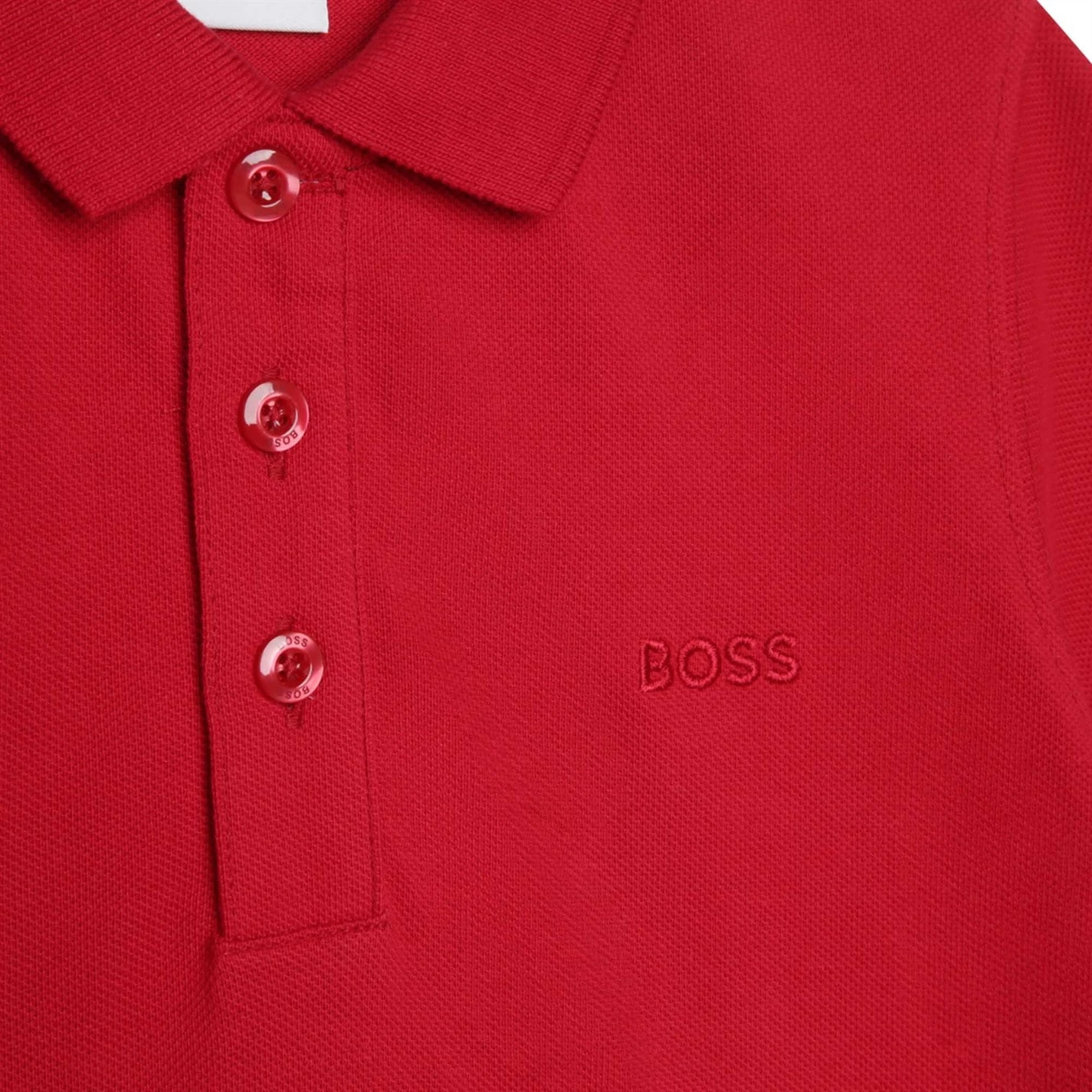 Add a hint of sophistication to your little man’s occasional attire with this Tonal Polo Shirt from Boss. Crafted from a cotton blend fabric, this short sleeved polo shirt features a ribbed shirt collar and a three button placket for maximum ease. The look is finished with the brands signature labelling embroidered to the left chest, perfect to pair with jeans and trainers for a smart casual look.