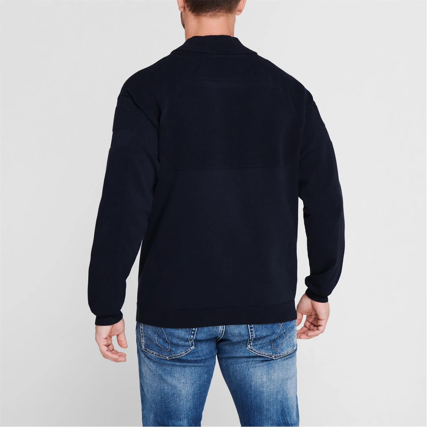 Add a designer touch to your knit wear selection with this premium layer from Hugo Boss. Crafted from a mix of Cotton and Polyester, the Zobio Sweater has been designed with a full knit construction, styling a tonal texture to the top for a minimalist yet original approach. Featuring ribbed trims, long sleeves and a flat collar for a flattering fit, pair this sweatshirt with a range of fits for a classic and cosy look.