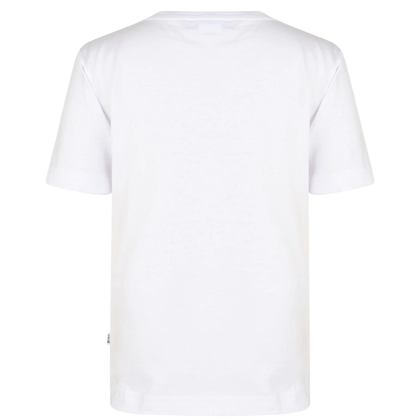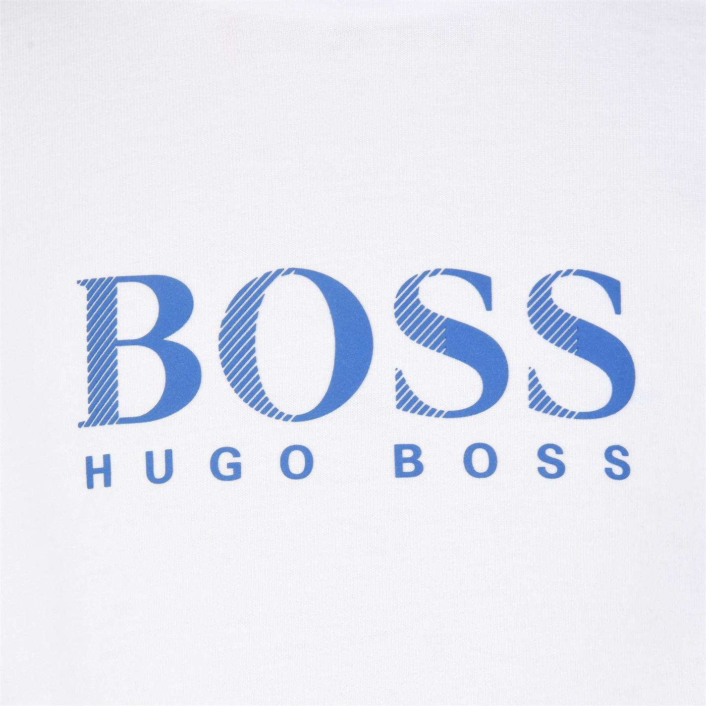 Refresh your little one’s wardrobe with this Boys Short Sleeve Big Logo T Shirt from BOSS. Crafted in a soft cotton construction, this t shirt is cut in a regular fit and features a ribbed crew neckline, short sleeves, a straight hemline and elasticated trims for comfort. The look is finished with a branded tab to the side and the brand’s logo printed to the front for brand recognition. Machine washable at 30 degrees. Please note: The style you receive may vary from the image shown.