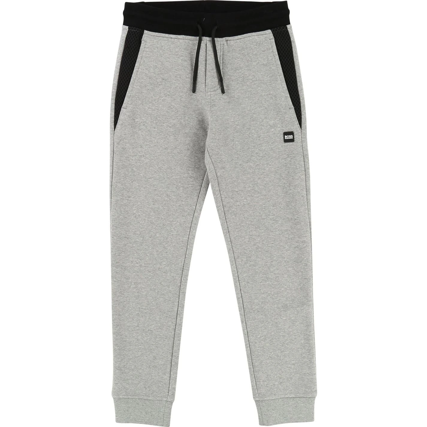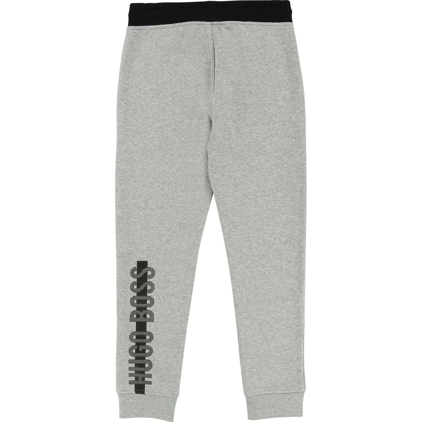 Cotton polyester fleece tracksuit pants, drawstring at waist, mesh look printed yokes, silicone label + high density logo print on back left leg bottom.