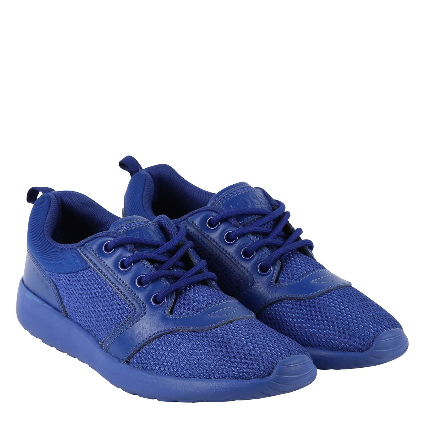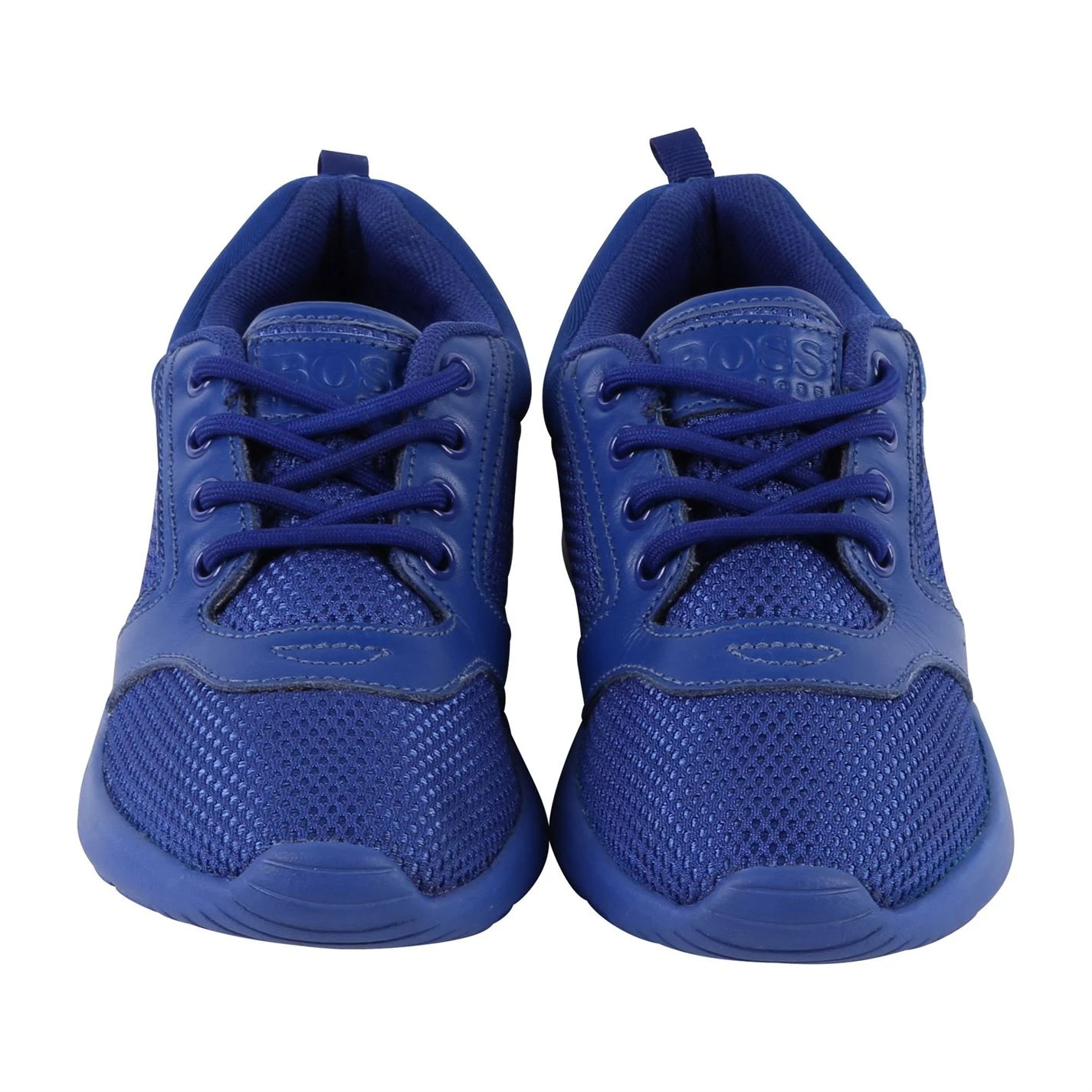 Ensure those tiny little feet look stylish on a weekend with these boy trainers by Boss. Stitched from durable leather, they feature a round toe and are secured with lace-up closures to lend a comfortable fit. Enhanced with mesh detailing, pull tabs and debossed with the signature brand labelling, these trainers coordinate well with a t-shirt and denim shorts to pull-off on a cute attire.