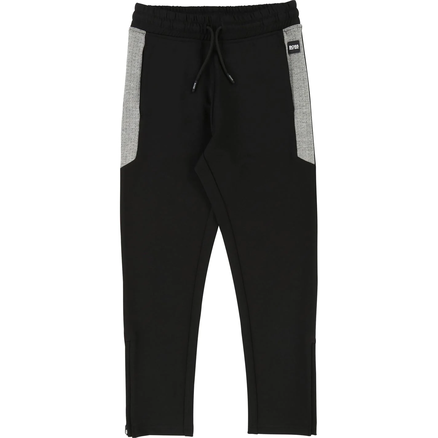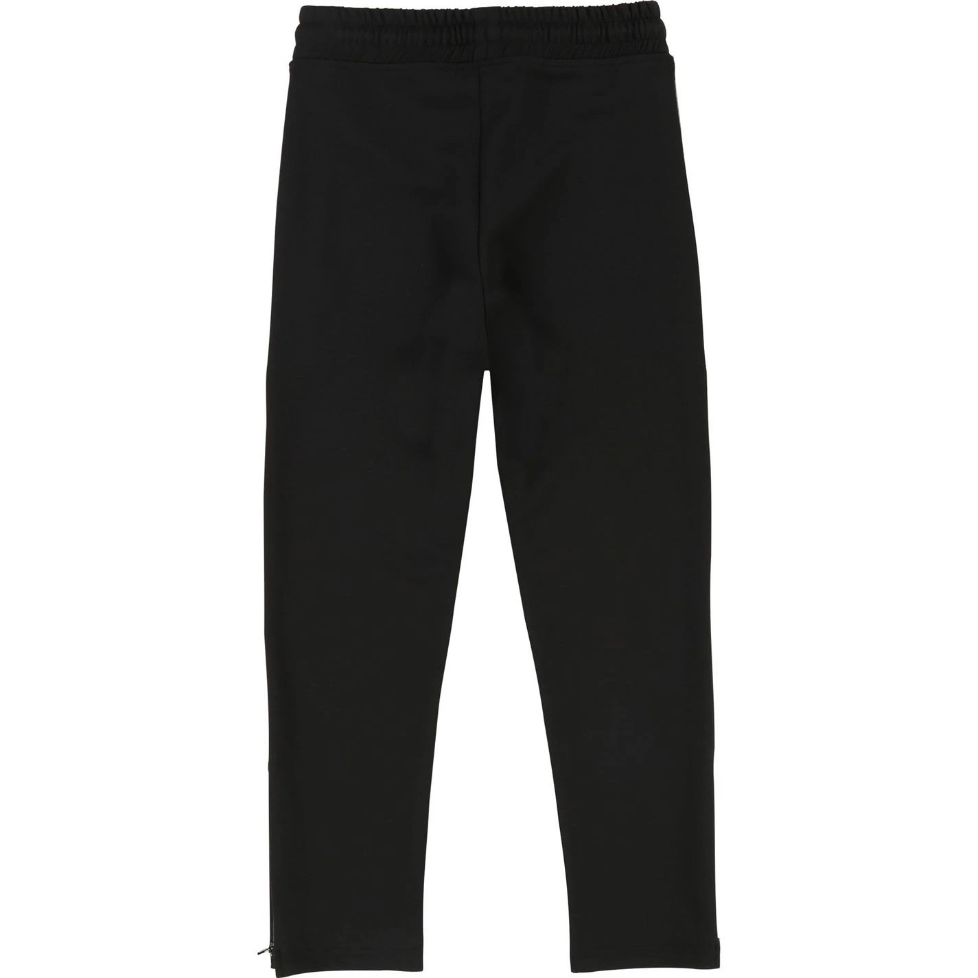 Polyester elastane rib training pants, tubic jersey trimming, drawstring at waist, zipped leg bottoms + silicone label.