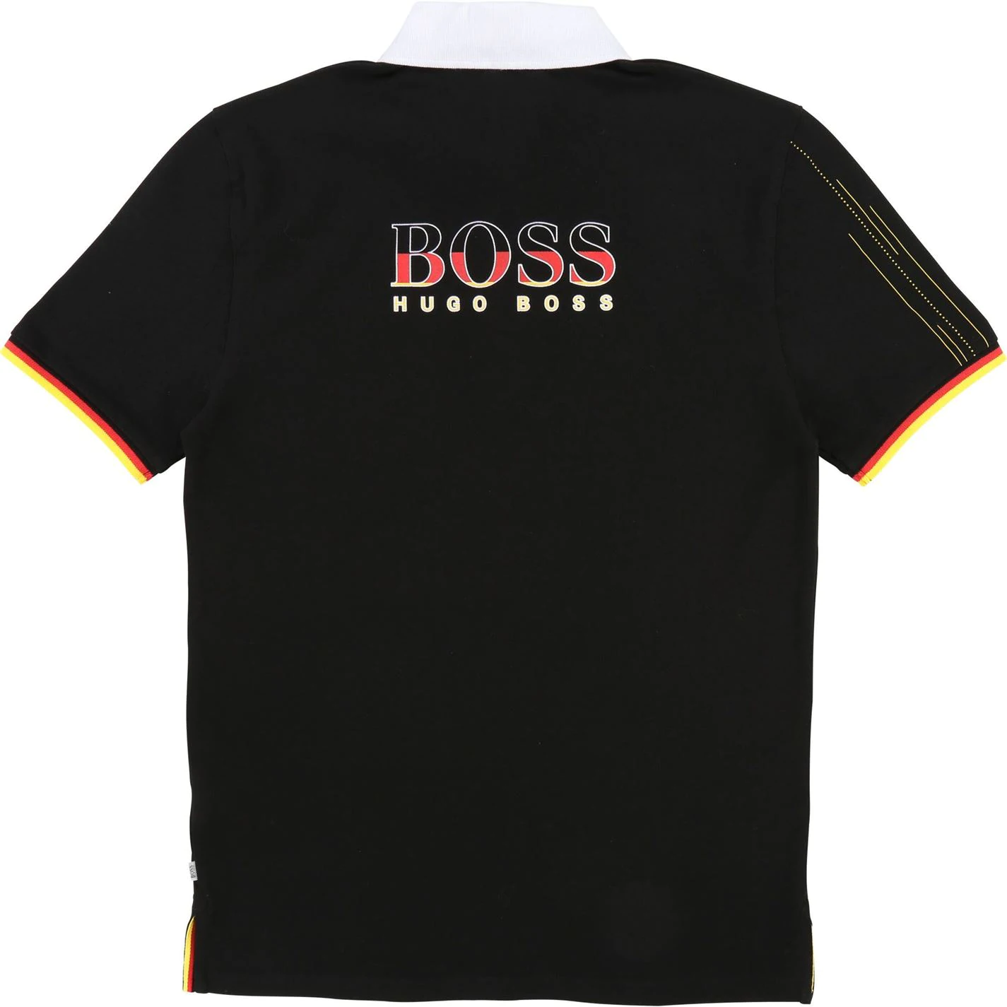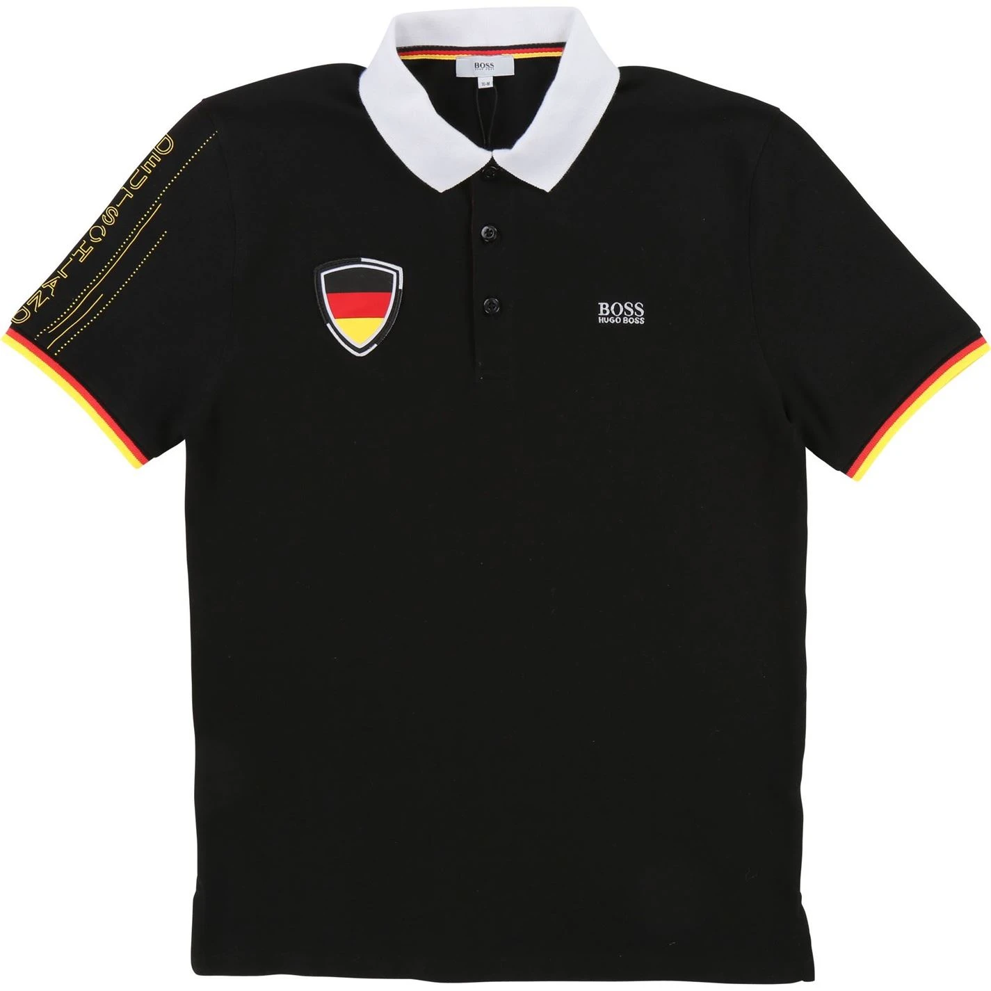 A perfect pick for daytime looks, this World Cup Germany polo shirt by Hugo Boss is truly stylish. Created from a soft pure cotton fabric, this short-sleeve design features a collared neckline and a three-button placket for comfortable wear. Decorated with flag badge on the front and brand print at the back to lend an iconic appeal, this polo t-shirt pairs well with washed jeans and trainers for a smart ensemble.