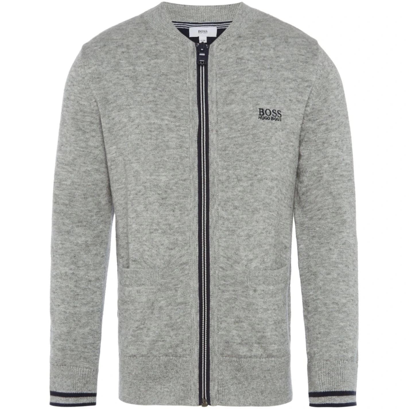 100% combed cotton knitted cardigan, contrasted details, contrasted zip fastener and embroidery.