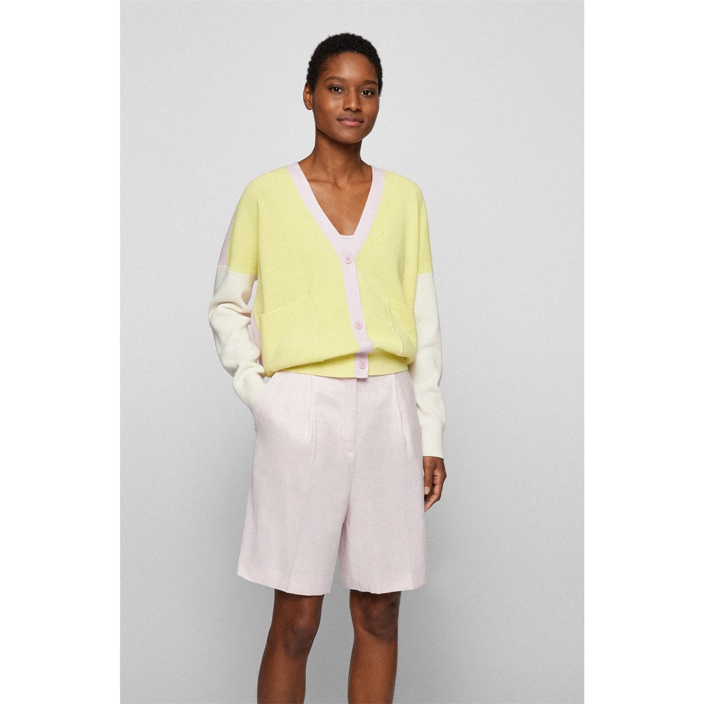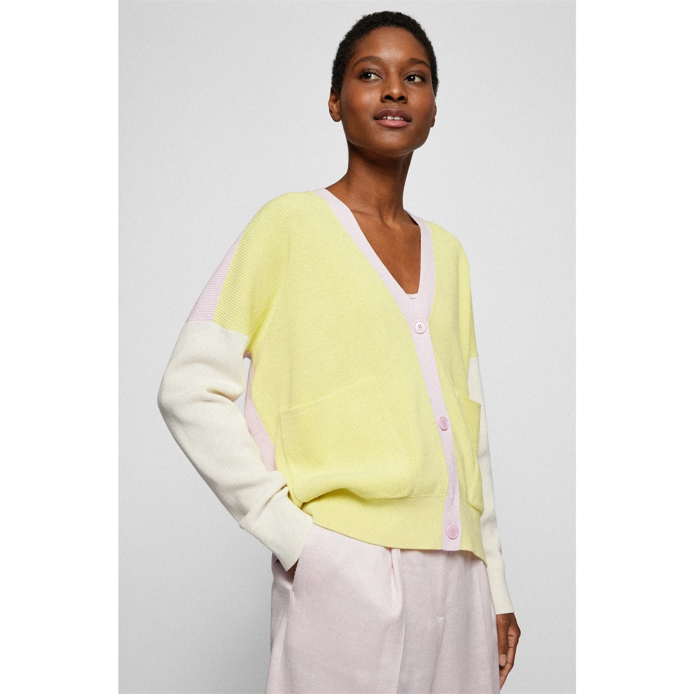 Update your designer knitwear with this C Fabianca Cardigan brought to you by boss . Crafted in a ribbed cotton knit for a classic feel, this cardigan features a V neckline adorning a three button fastening, long sleeves, ribbed trims and two patch pockets to the front. With an elegant multi colourway design throughout that makes this perfect for casual or smarter occasions, this piece is finished with the Boss branding for a premium look.