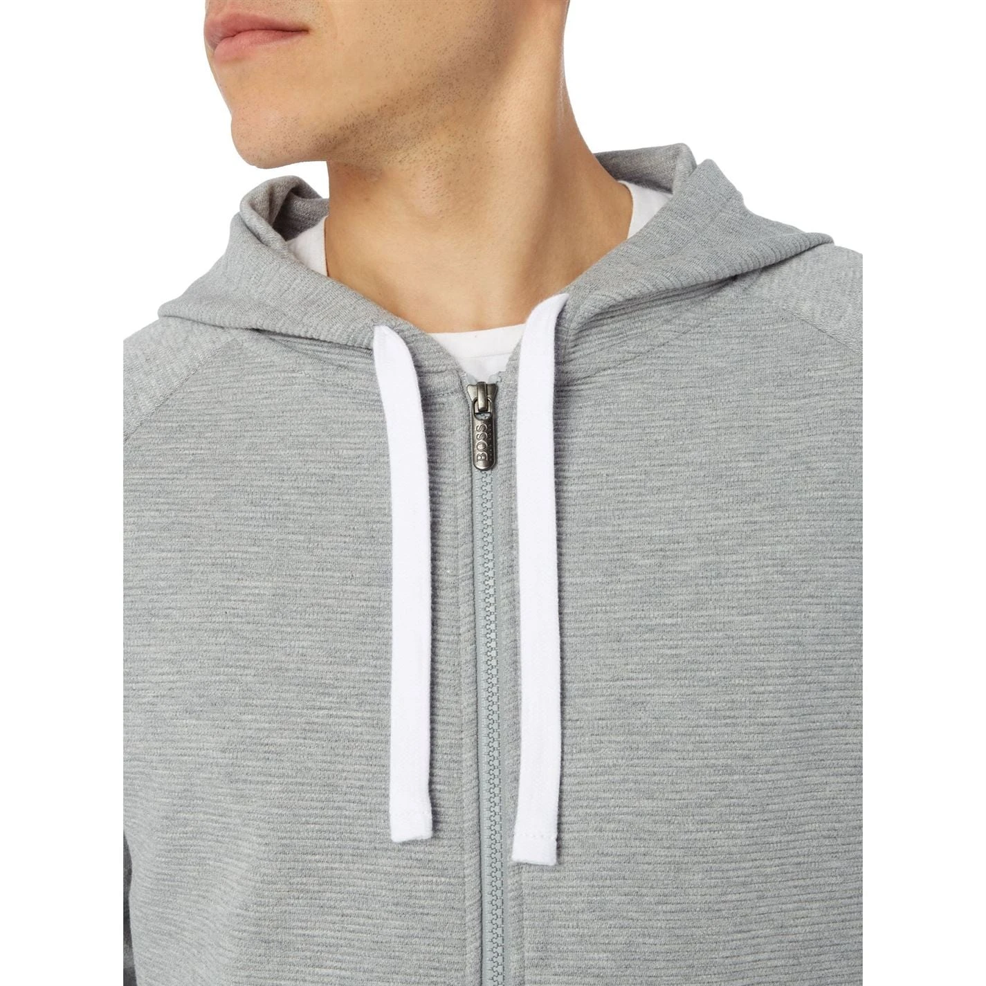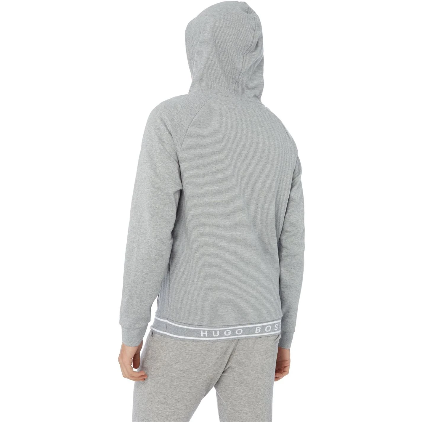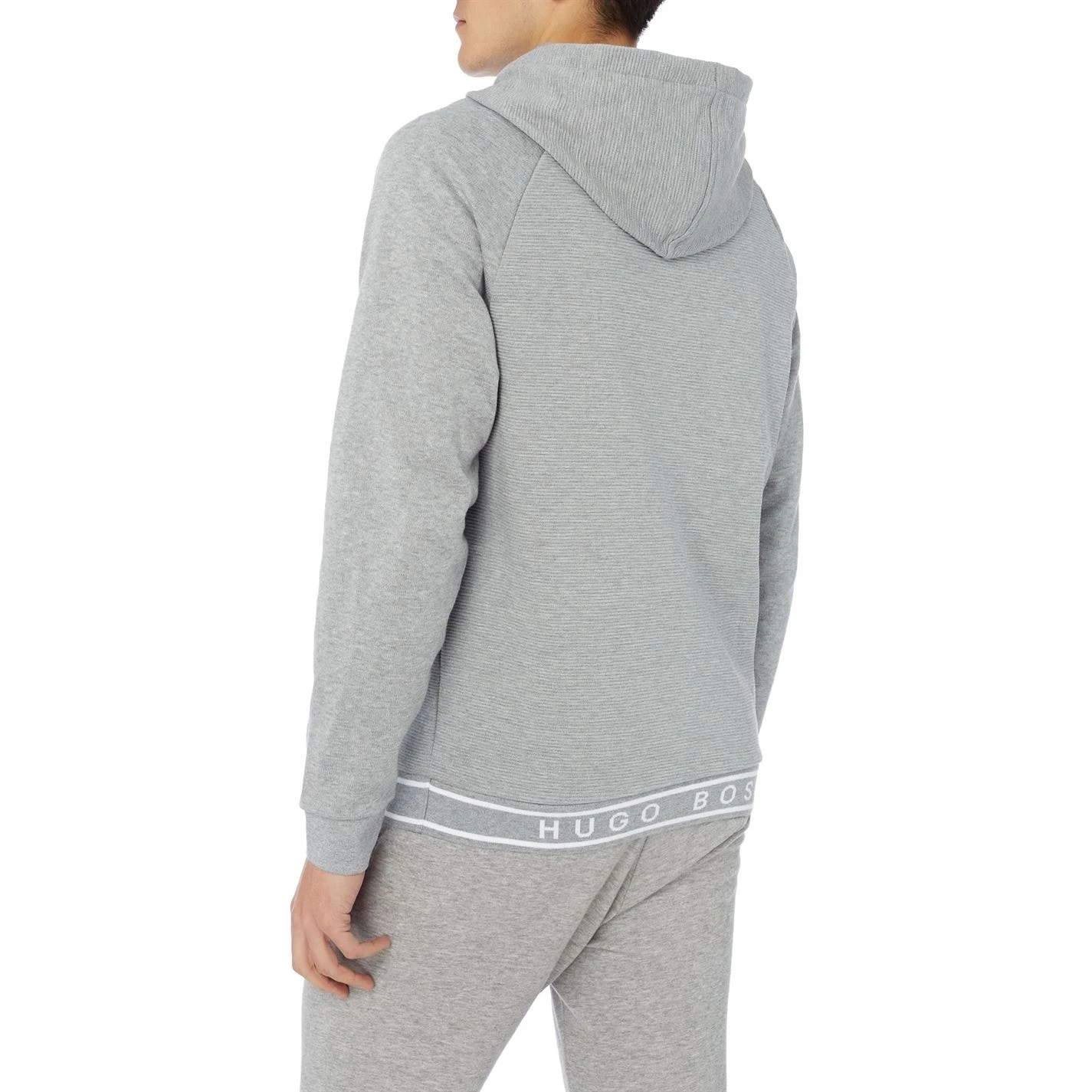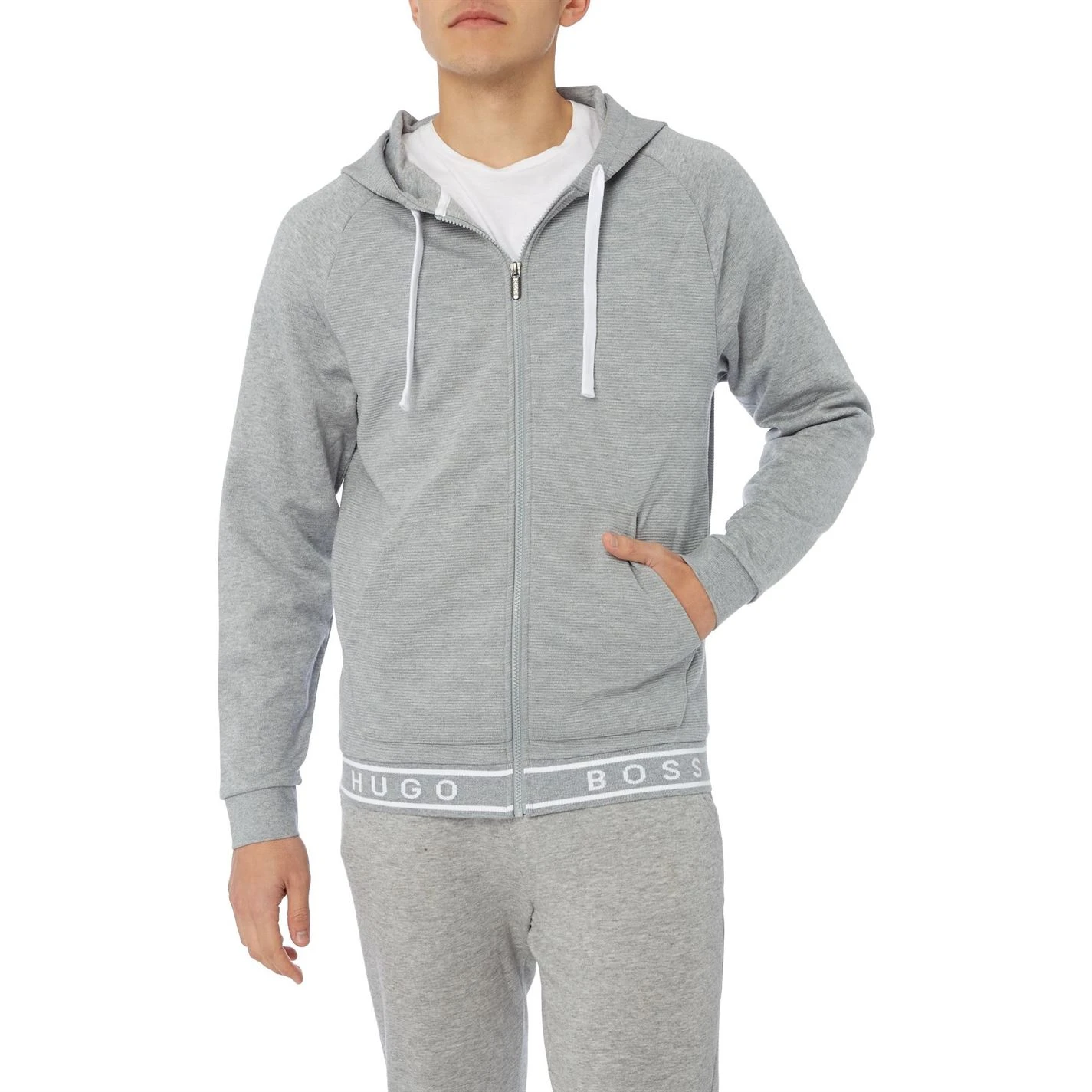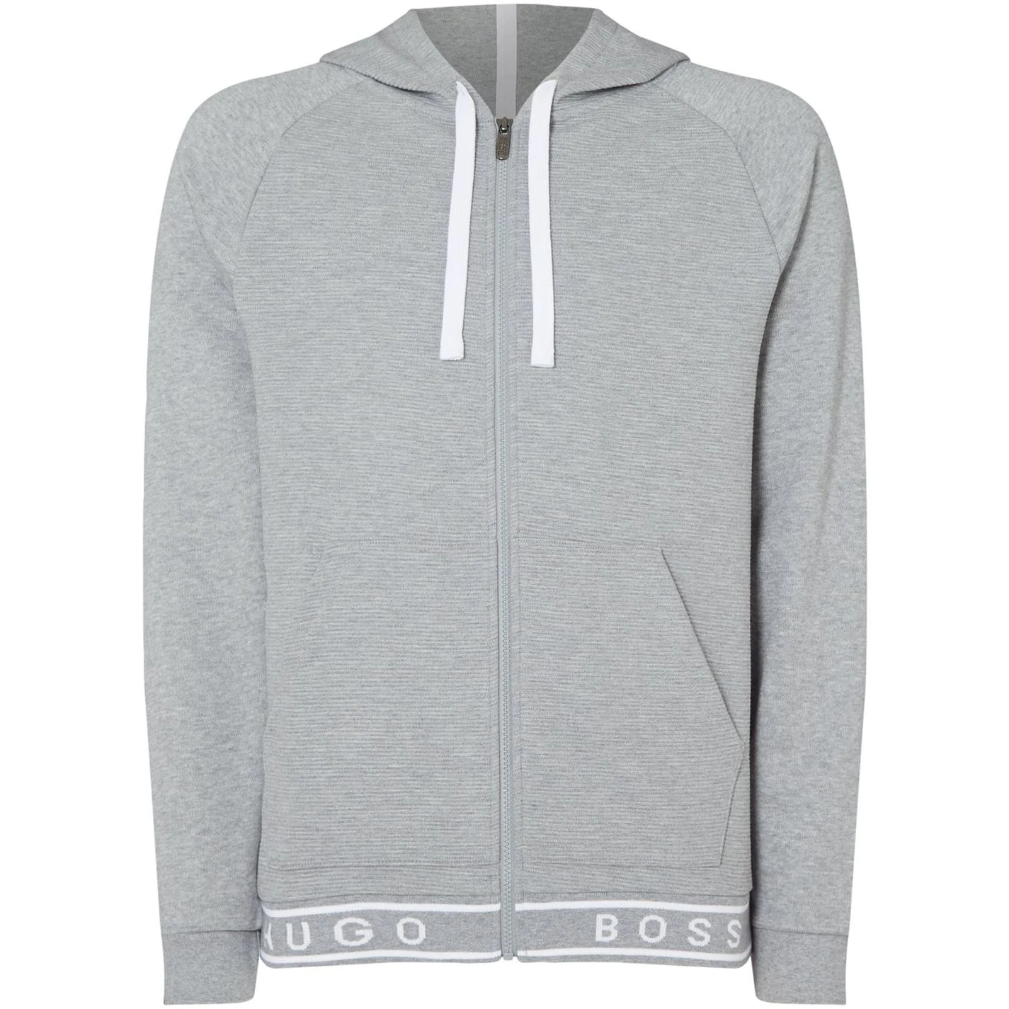 Hugo Boss lend stylish charm to your outerwear edit with this Contemporary rib tape logo zip through hoodie. Expertly cut from a pure cotton in a long sleeved profile, it is decked with two pockets on the front for a practical touch. Finished with ribbed trims, it is secured with drawstrings at the hood for added warmth. Team with jeans and trainers for a refreshing outfit.