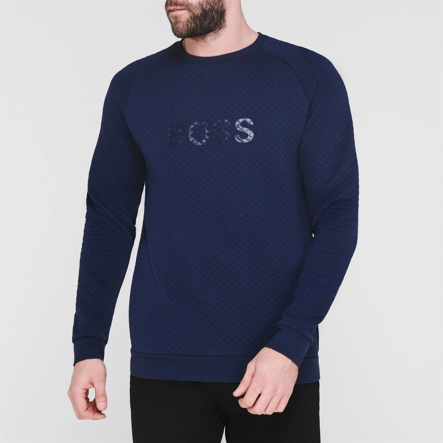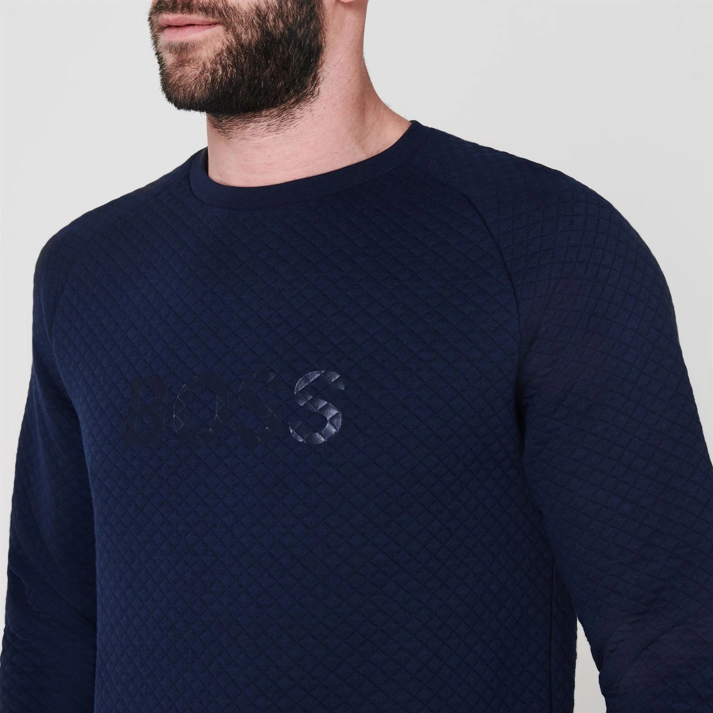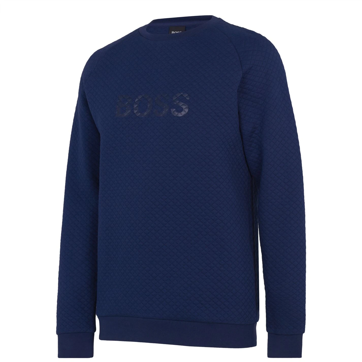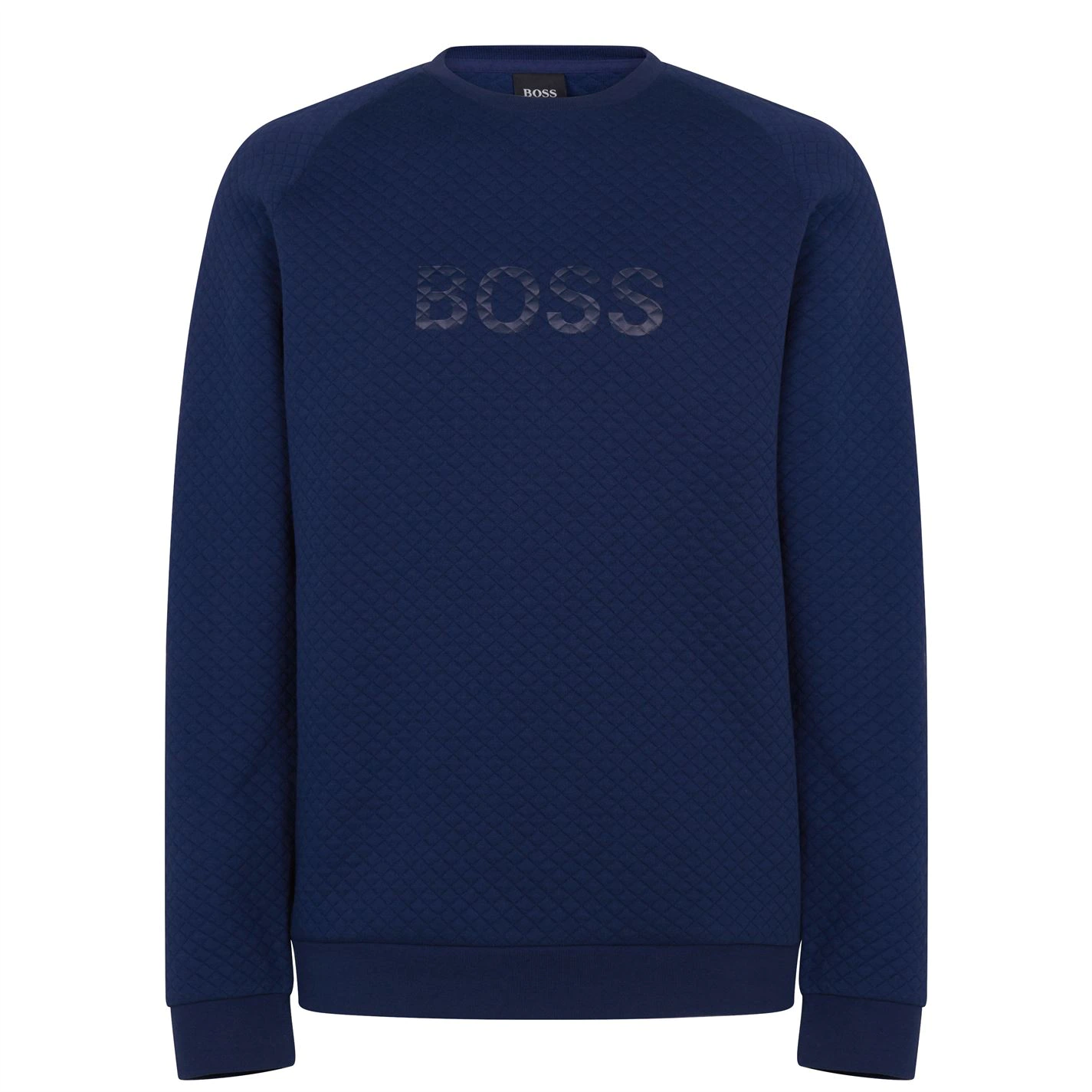 Update your casual collection with the Boss Contemporary Sweatshirt. Made from a cotton blend with a crew neckline and ribbed trims, the design features a diamond quilted texture for a high quality look and feel. With the tonal Boss branding to the front offering instant brand appeal, the piece is complete with a straight hem.