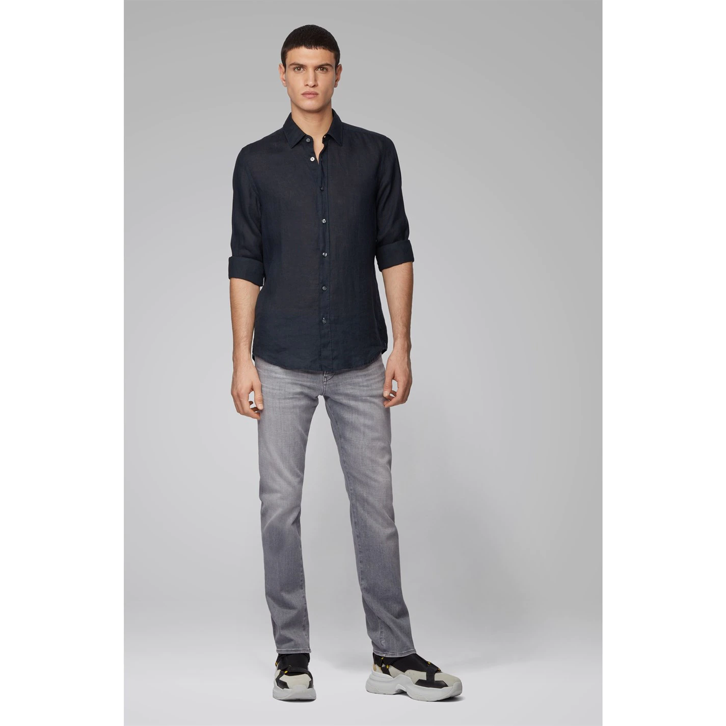 Elevate your collection with this BOSS Delaware Slim Jeans. Crafted with a button fastening waist and a zip up fly for a secure fit, they feature belt loops and five pockets for a classic look. These jeans are designed with a signature logo and are complete with BOSS branding.