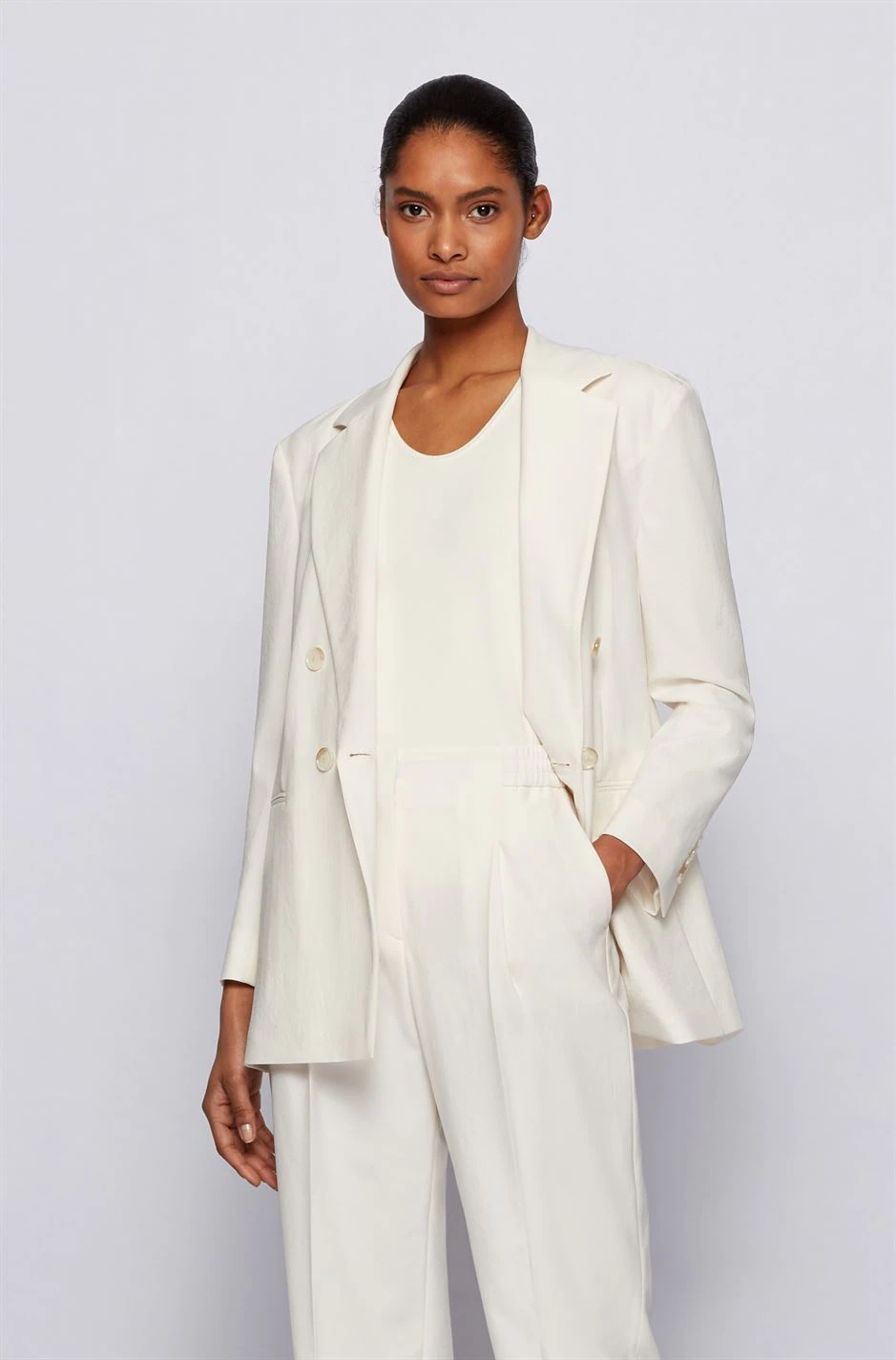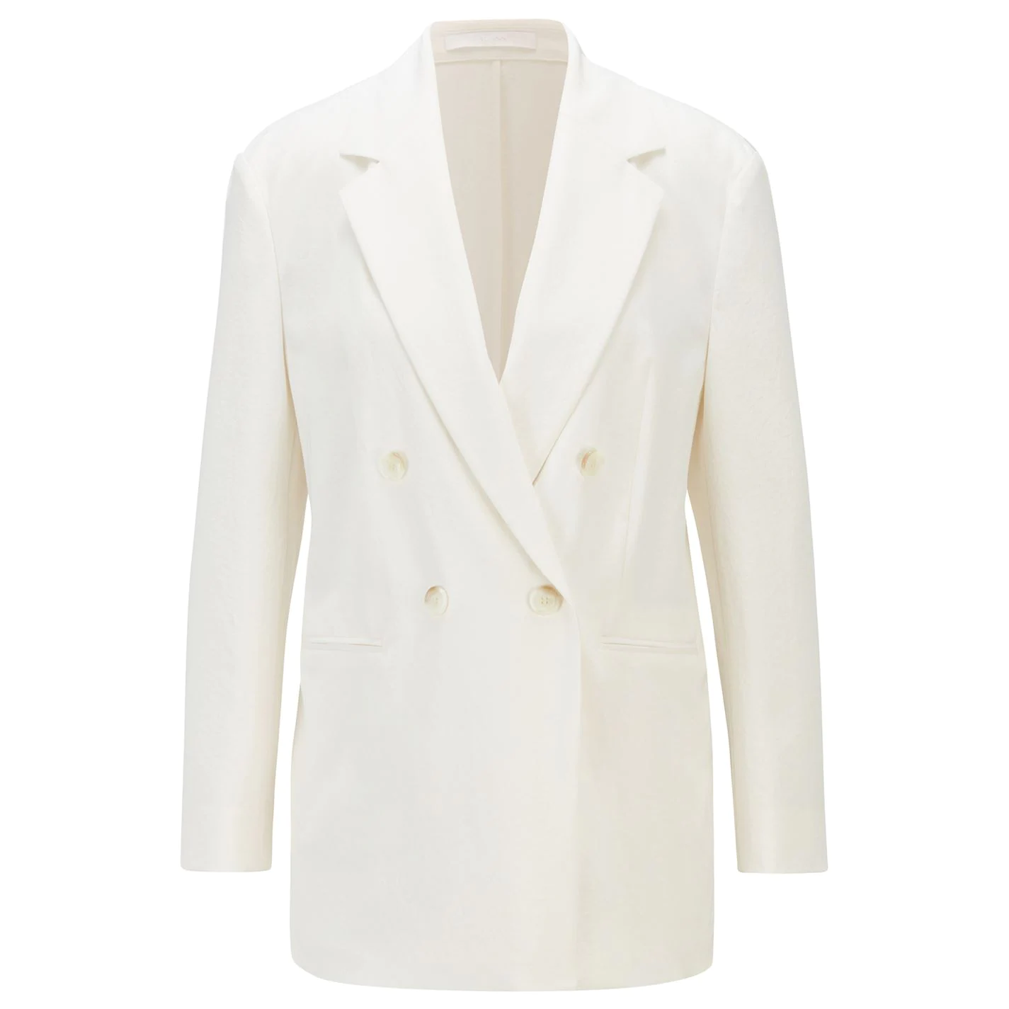 Update your collection with this BOSS Double Breasted Blazer. Crafted with a notch lapel collar and double breasted button fastening for a secure fit, it features long sleeves with button cuffs and two hand pockets for a classic look. This blazer is a solid colouring throughout designed with a signature logo and is complete with BOSS branding.