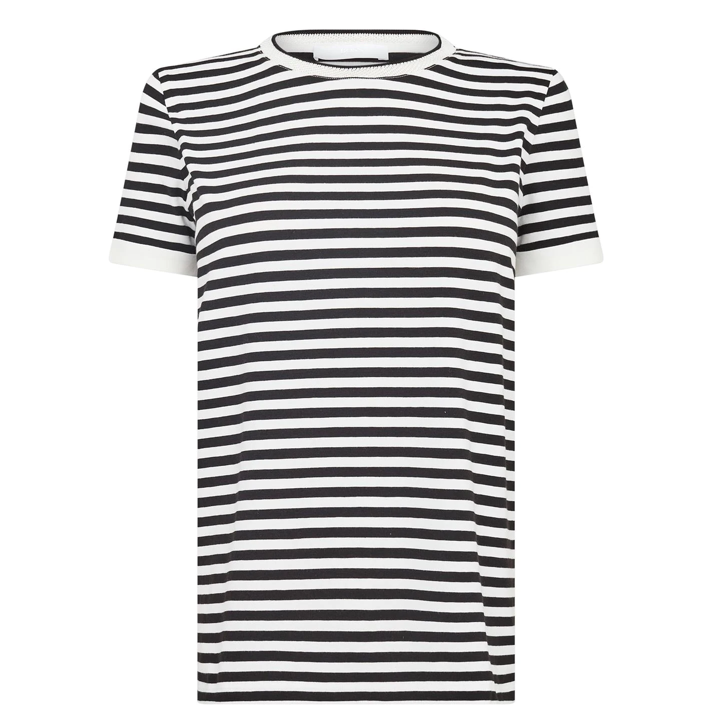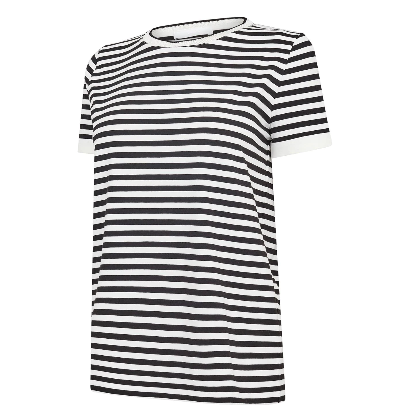 Add to your wardrobe classics with this t-shirt from Hugo Boss. With short sleeves and a knitted crew neck, this t-shirt is made from a cotton and modal blend jersey for all day comfort. With upturned cuffs to the sleeves for a casual style, this t-shirt is finished in a timeless navy and white stripe.