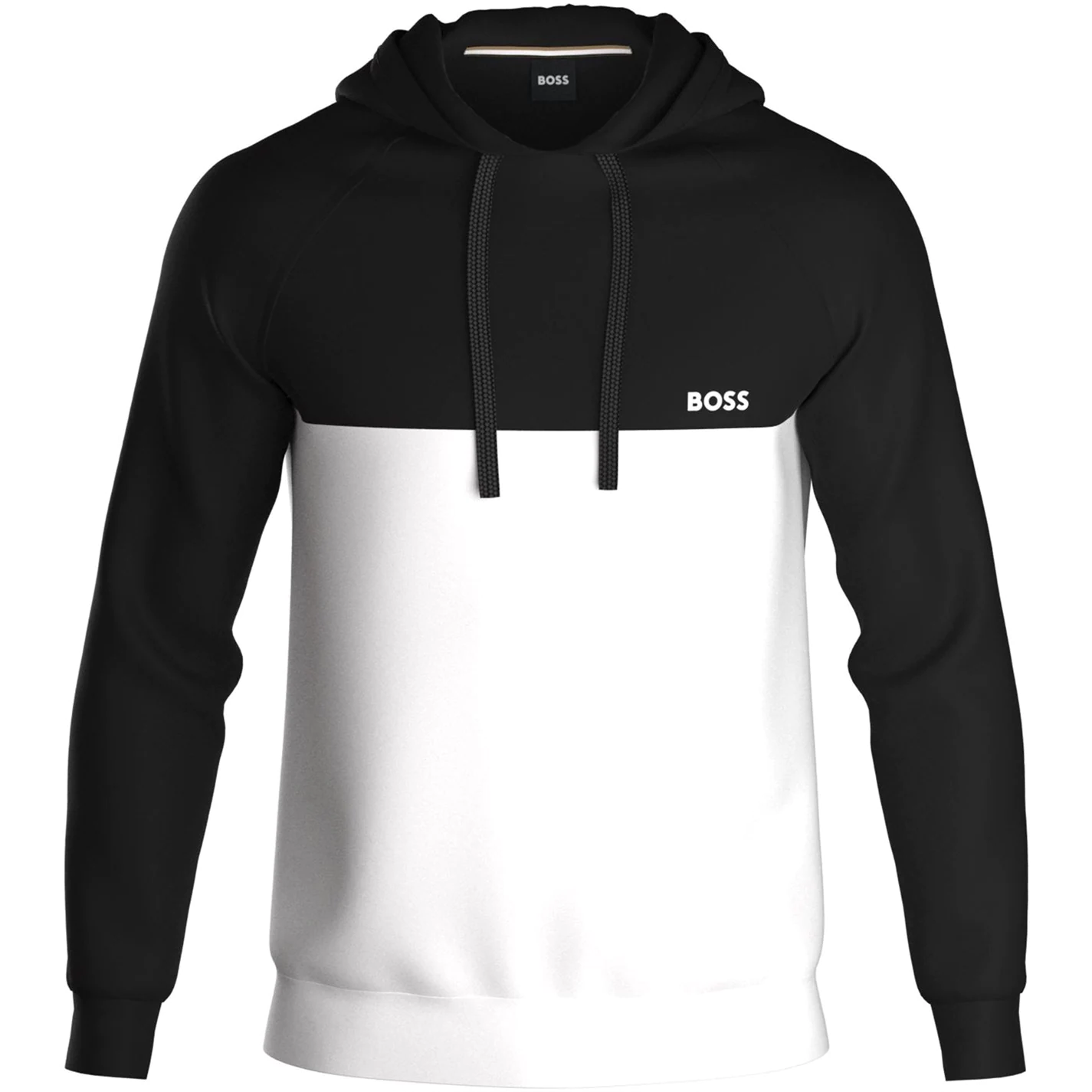 Enhance your collection with this BOSS Fashion Hooded Sweatshirt. Constructed with long sleeves and a drawstring adjustable hood for a classic look, it features ribbed trims for a comfortable fit. This sweatshirt is a colour block design with a signature logo and is complete with BOSS branding.