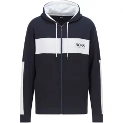 Enhance your collection with this BOSS Fashion Zip Hoodie. Constructed with full zip fastening and long sleeves with ribbed trims for comfort, it features a drawstring adjustable hood and two hand pockets for a classic look. This hoodie is a colour block design with a signature logo and is complete with BOSS branding.