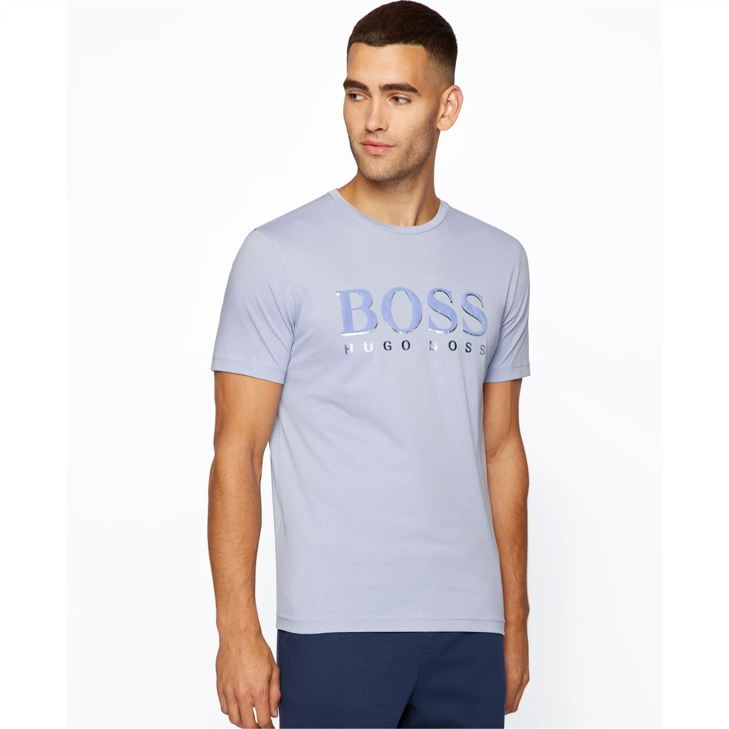 Refresh your essentials with the Flocked Logo T Shirt from BOSS. Made from a soft feel cotton material, this t shirt is cut in a regular fit and features a ribbed crew neckline, short sleeves and elasticated trims for a comfortable wear. The look is finished with the Hugo Boss logo to the chest in a flocked fabric for brand recognition. Machine washable at 30 degrees.