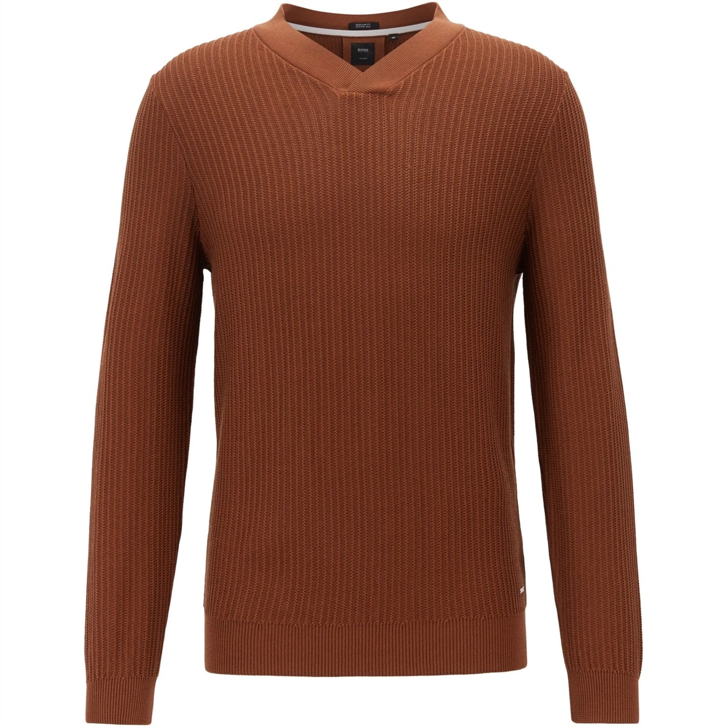 Enhance your collection with this BOSS Florenzo Jumper. Constructed with long sleeves and a ribbed V neckline for a classic look, it features elasticated hems for a comfortable fit. This jumper is a solid colouring throughout designed with a signature logo and is complete with BOSS branding.