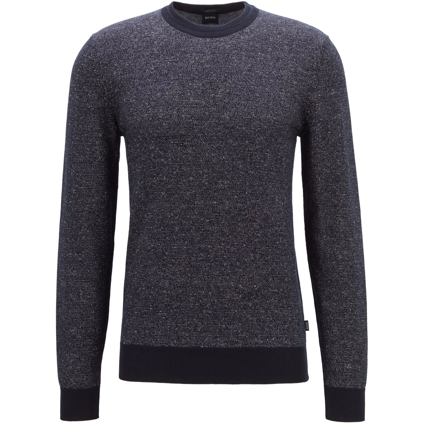 Enhance your collection with this BOSS Franio Knit Jumper. Constructed with long sleeves and a ribbed crew neckline for a classic look, it features elasticated hems for a comfortable fit. This jumper is a solid colouring throughout designed with a signature logo and is complete with BOSS branding.