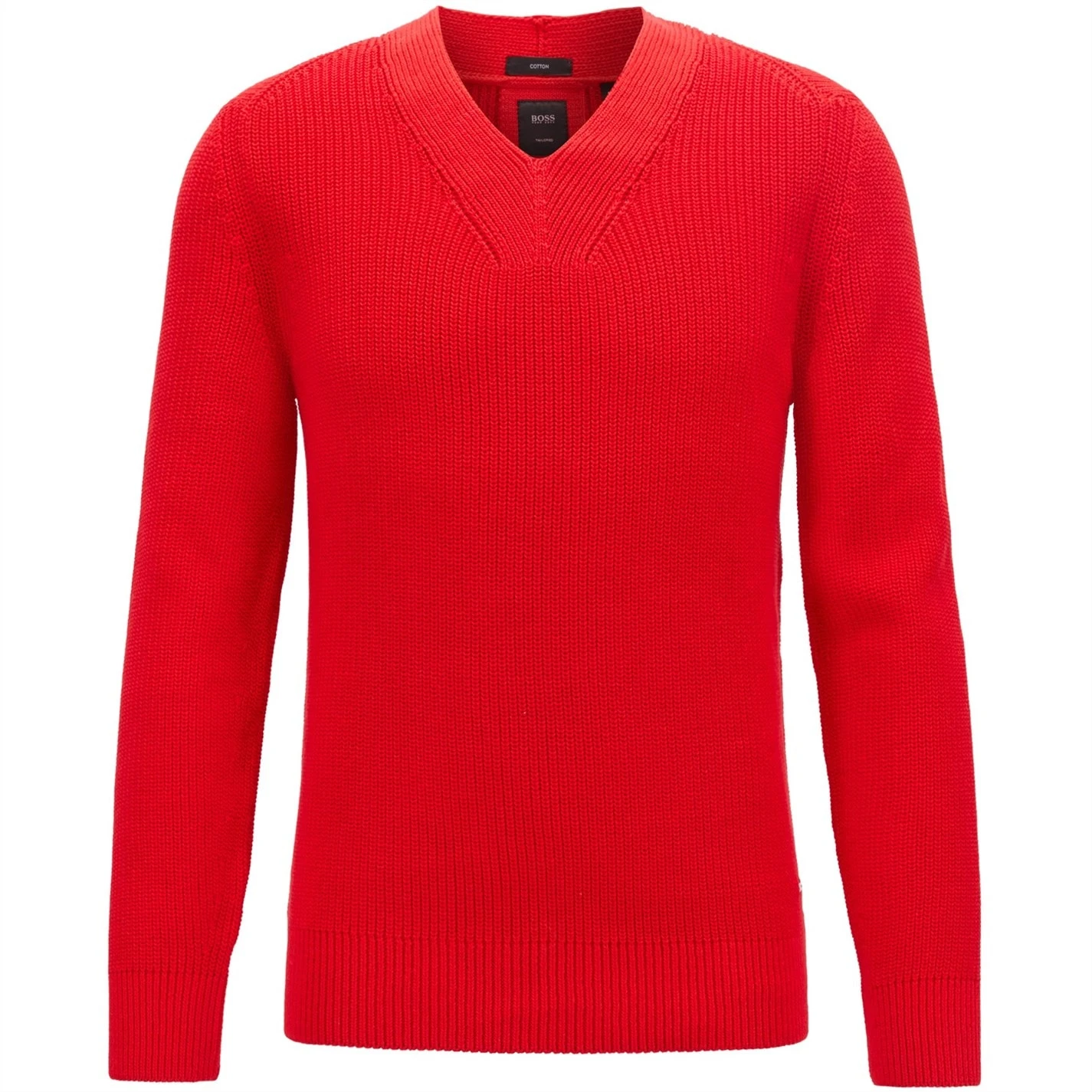 Enhance your collection with this BOSS Fulmino Jumper. Constructed with long sleeves and a ribbed V neckline for a classic look, it features elasticated hems for a comfortable fit. This jumper is a solid colouring throughout designed with a signature logo and is complete with BOSS branding.