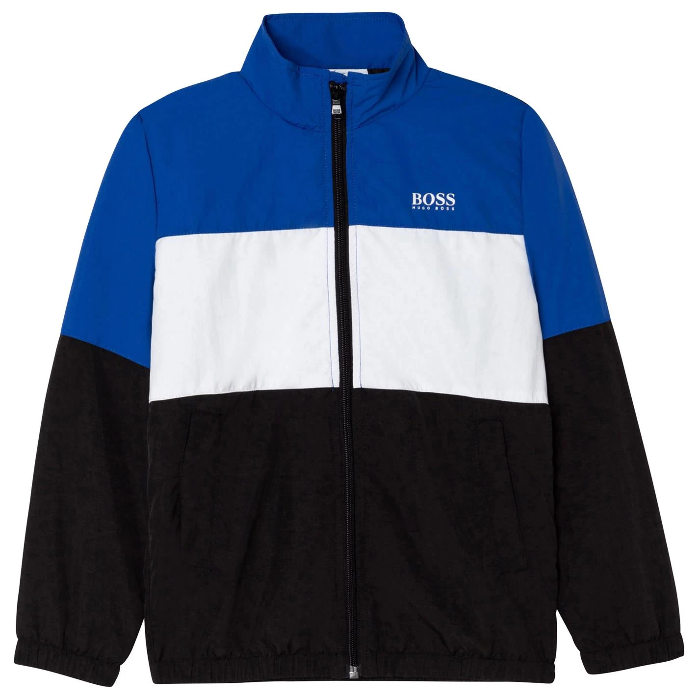 Elevate your little one’s collection with this BOSS Funnel Zip Fleece Jacket. Crafted with full zip fastening and long sleeves for a secure fit, it features two hand pockets for a classic look. This jacket is a colour block design with a signature logo and is complete with BOSS branding.