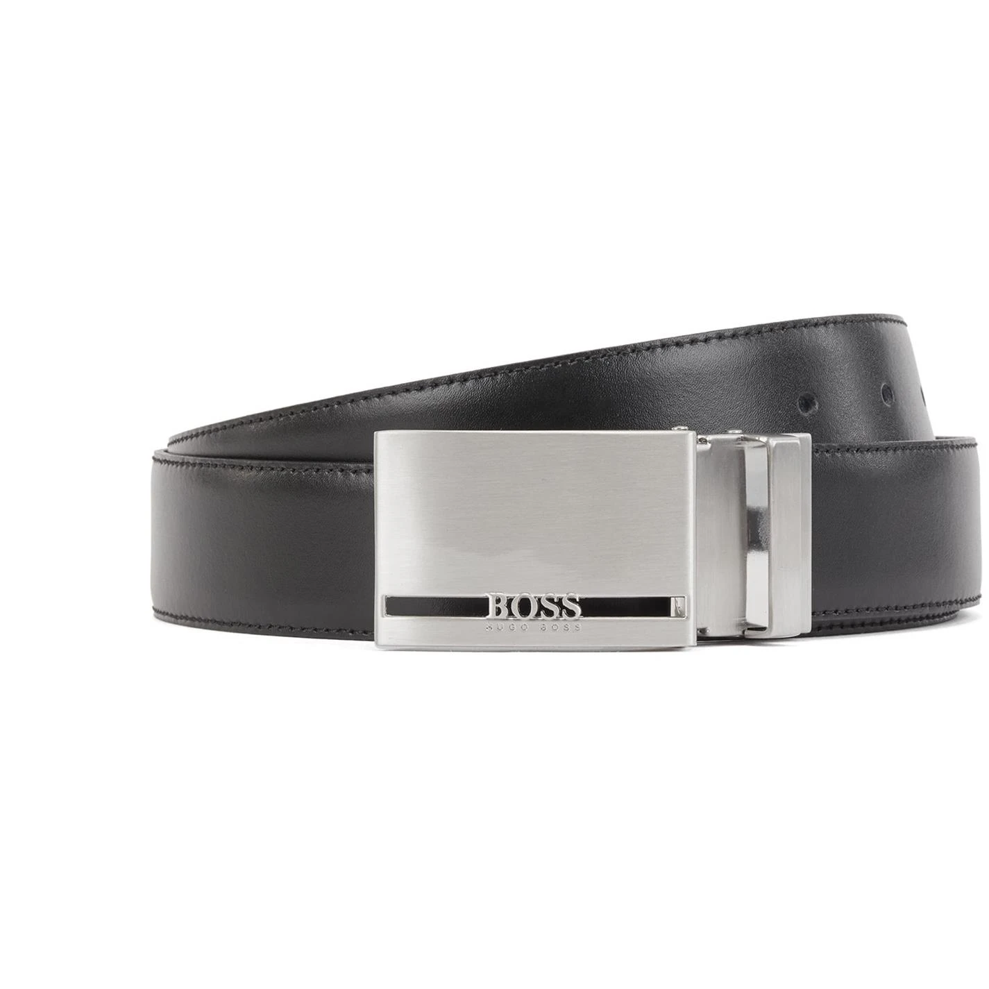 The Boss Galliz Belt is perfect for heading into the office or formal events, featuring a smooth leather construction with tonal stitching for a simple and smart look, a push clasp buckle with the iconic Boss branding completing the high quality look.