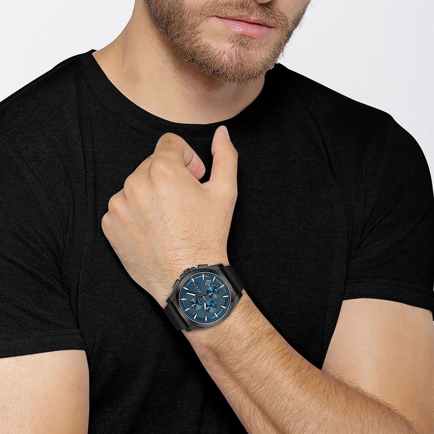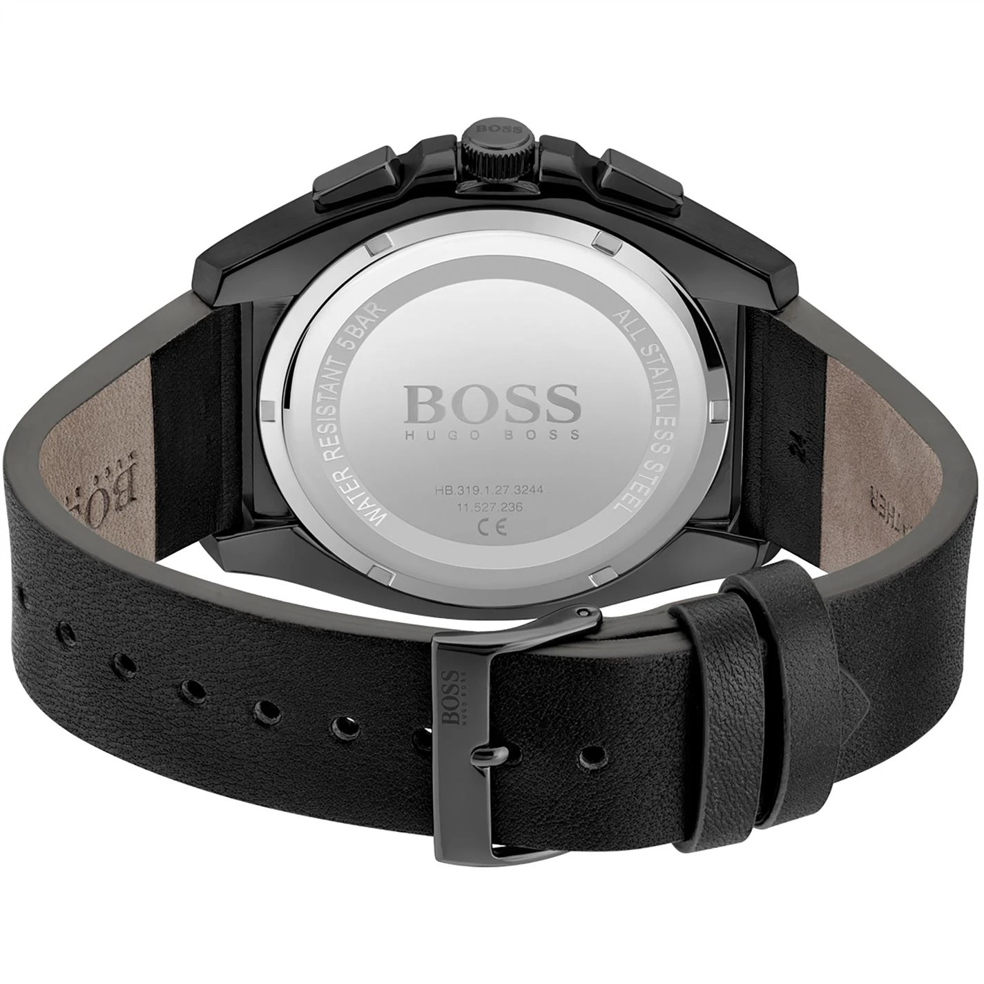 Designed with action and adventure in mind, the Grandmaster from BOSS Watches is a contemporary chronograph with a sporty aesthetic. Featuring a 46mm case, textured dial, leather strap and BOSS buckle.