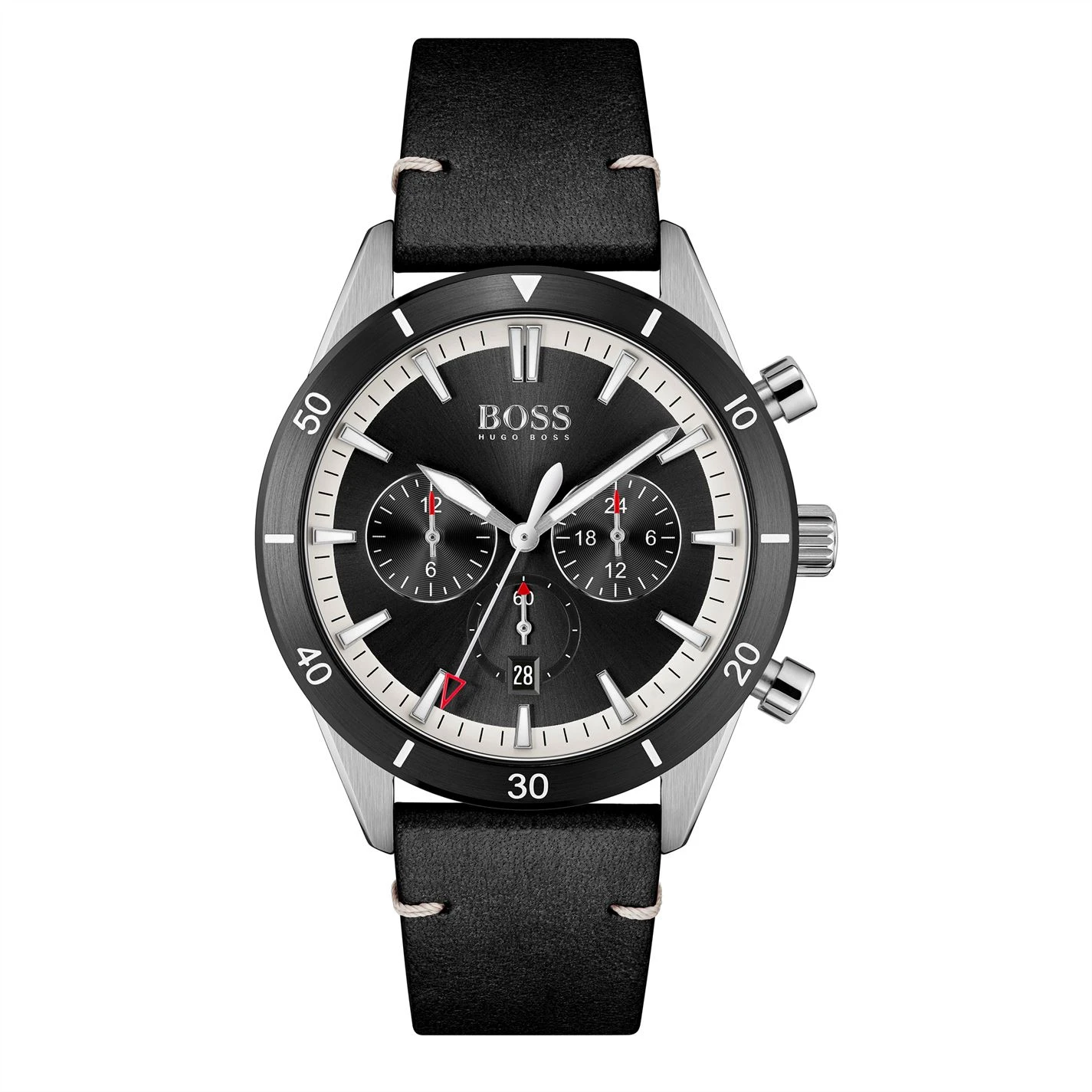 Created for the man looking to bring a touch of vintage-inspired cool to his everyday look, the Santiago is a laid-back design with signature BOSS flair. Featuring a 44mm stainless steel case with black bezel, dual time movement, black dial and stainless steel bracelet. Water resistant to 5ATM