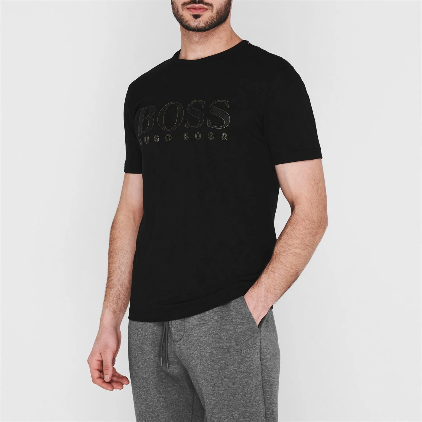 Update your collection with this Boss Gold T Shirt. Crafted with short sleeves and a crew neck for a classic look, it features a ribbed trim for a comfortable fit. This t shirt is designed with a signature logo to the front and is complete with Boss branding.