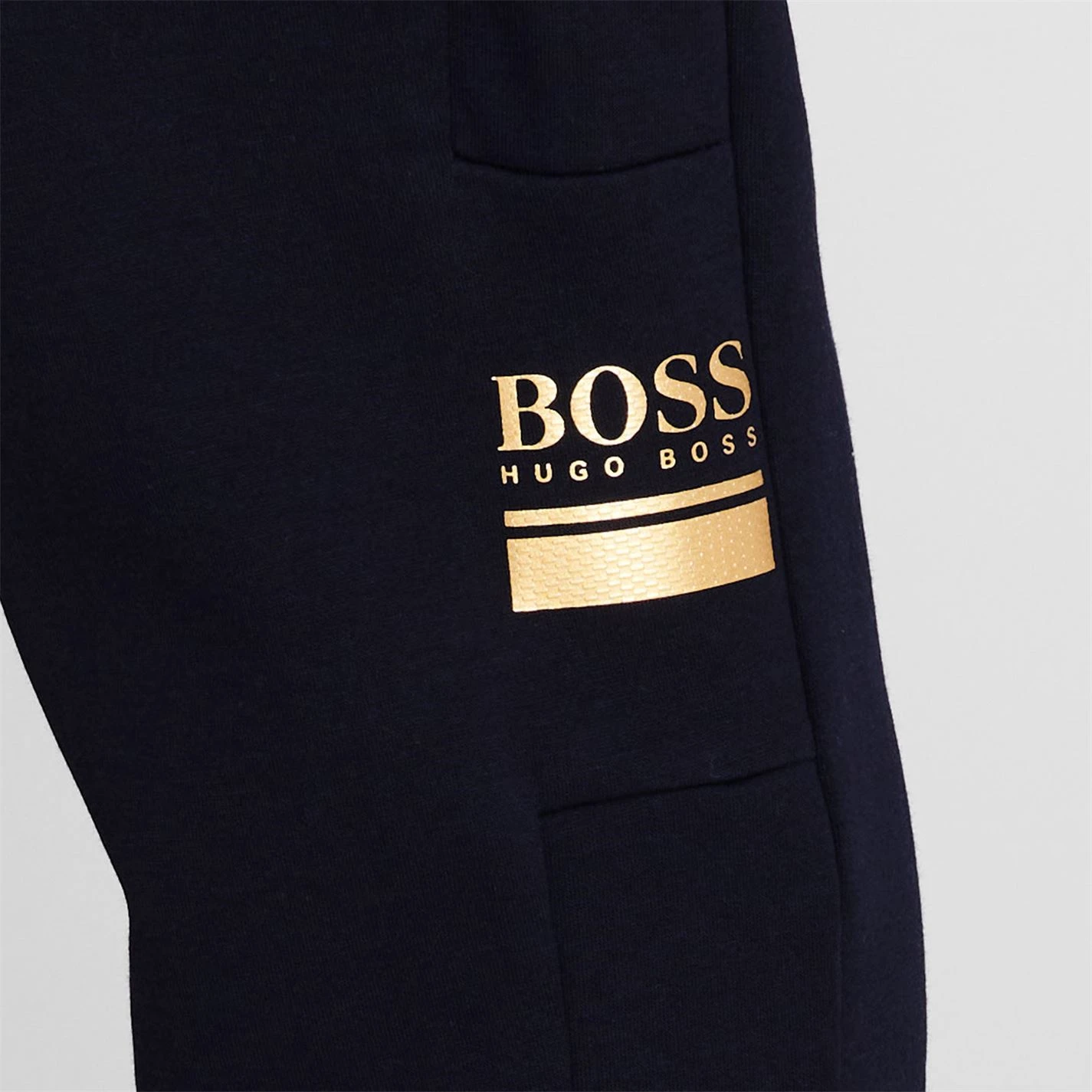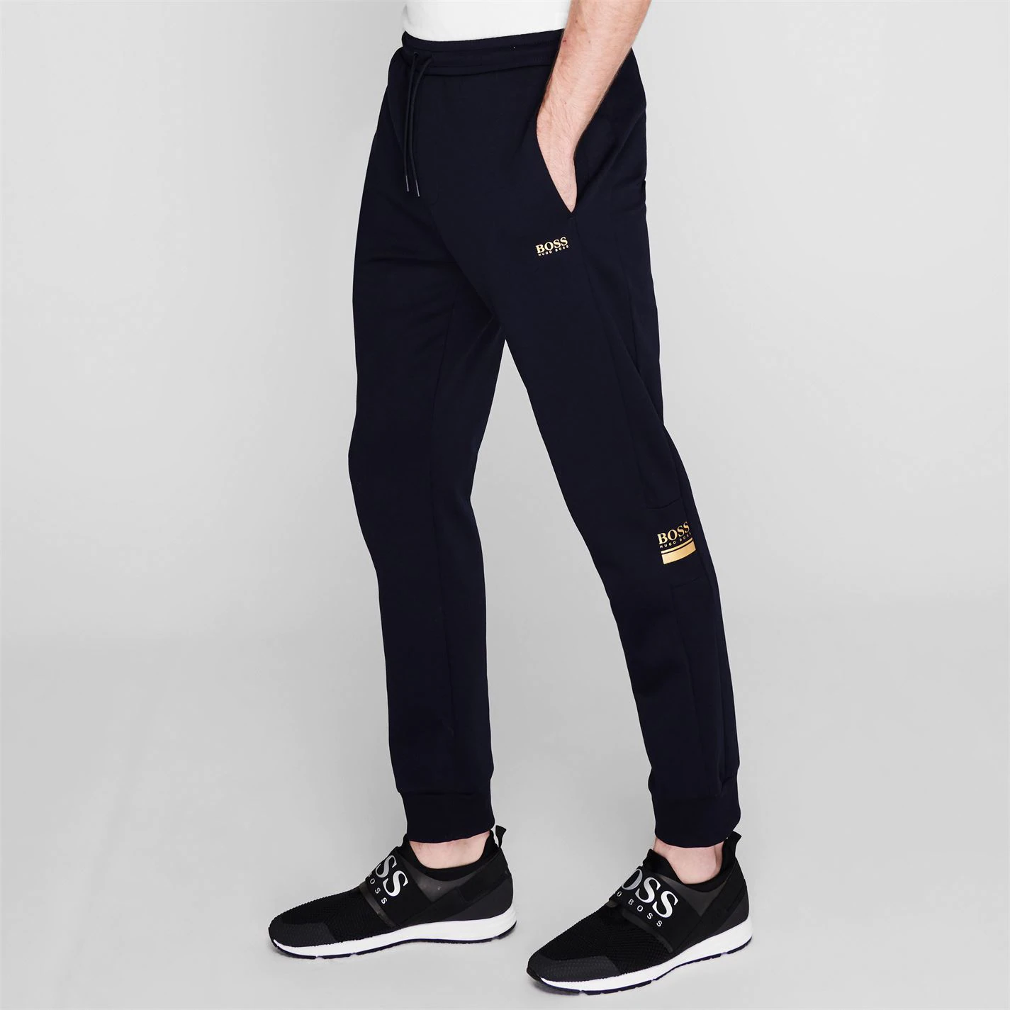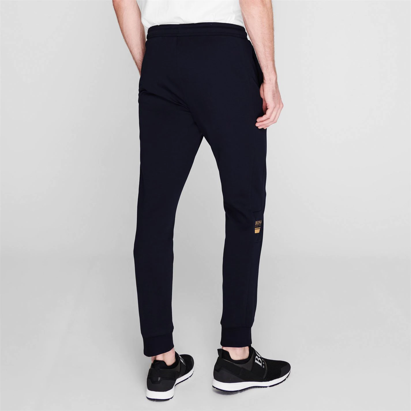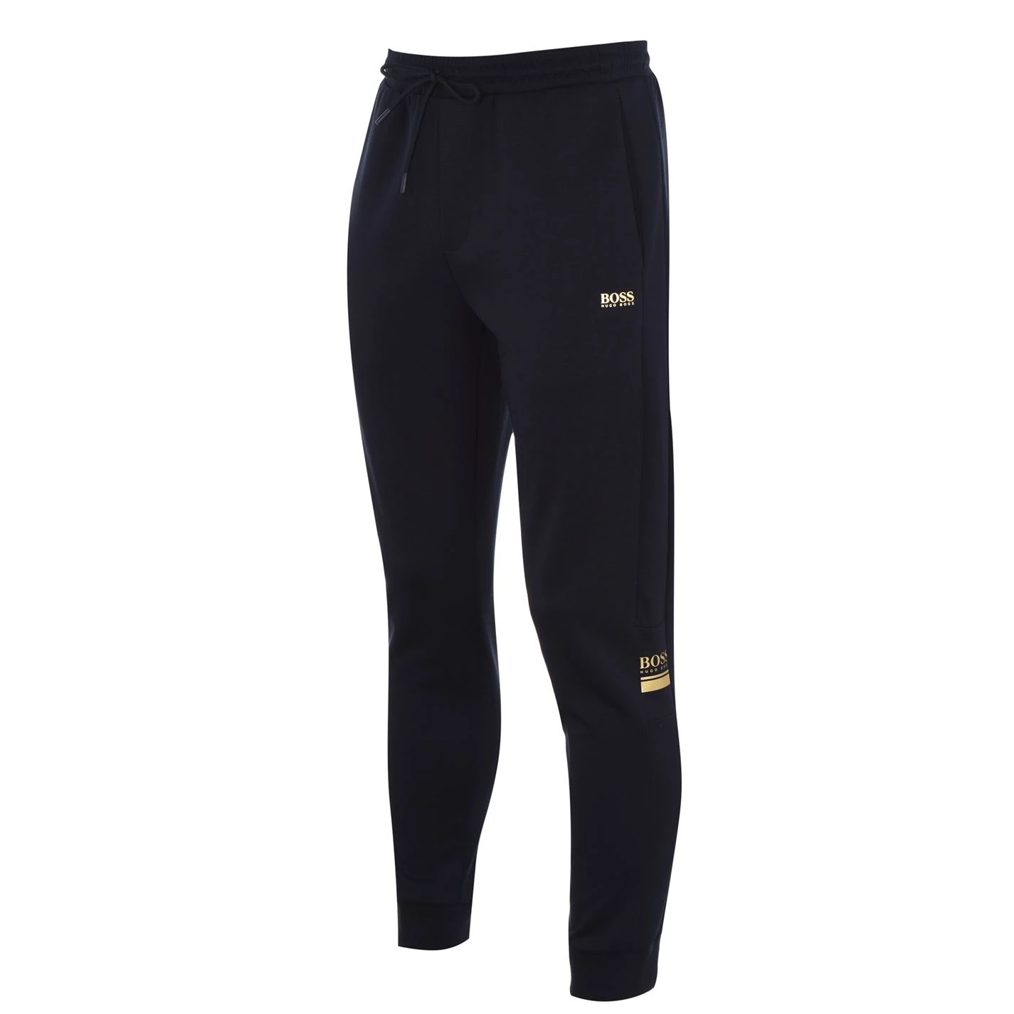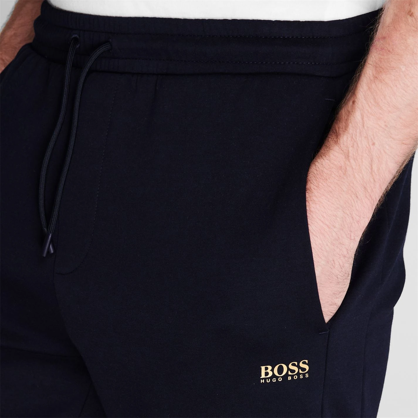 Upgrade your athleisure with the Hugo Boss Halvo joggers. Crafted with contrast detailing on the adjustable drawstring and sides, fleece lining and ribbed ankle cuffs for a comfortable fit. Two side pockets and brand detailing on the side complete the high-quality look.